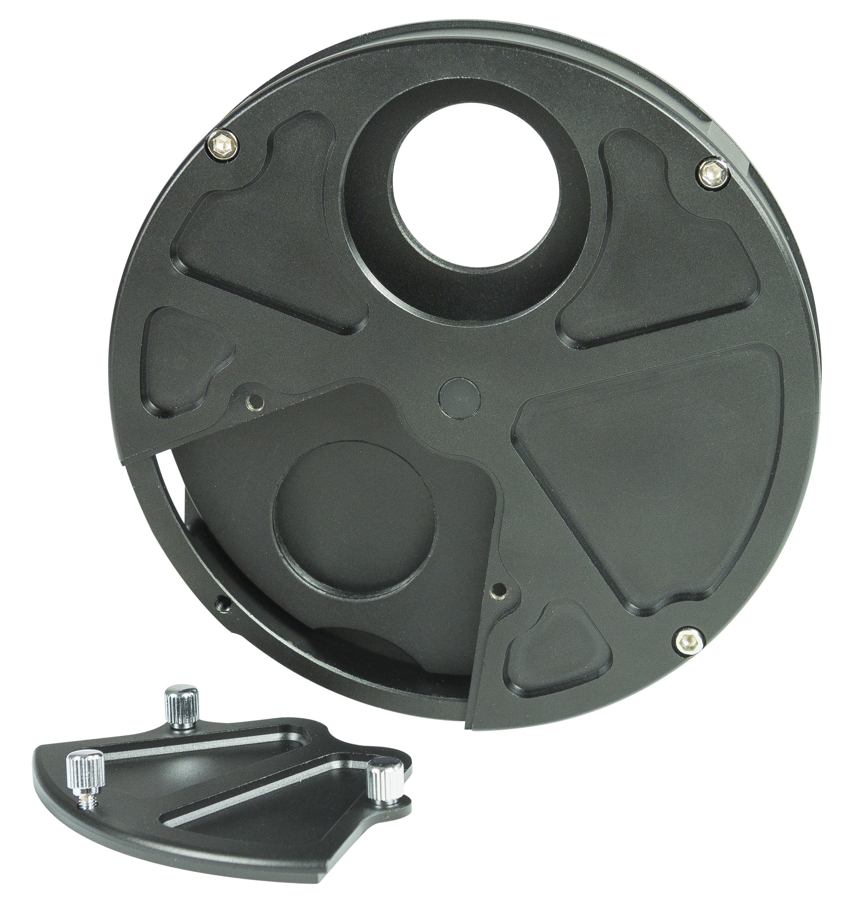 Čiernobiele kamery CCD sa musia kombinovať s niekoľkými filtrami, aby bolo možné získať farebné snímky. Pomocou kolieska filtrov môžete jednoducho prepínať medzi rôznymi filtrami bez toho, aby ste museli premiestňovať kameru alebo teleskop. Jednoduchým otáčaním kolieska môžete prepínať z jedného filtra na druhý. Ak chcete filter vymeniť, jednoducho otvorte kryt pomocou ručných skrutiek a vymeňte filter - a môžete pokračovať v snímaní. Hliníkové koliesko filtra pozostáva z vysokokvalitných komponentov vrátane guľôčkového ložiska.Koliesko filtra bolo špeciálne vyvinuté pre monochromatické fotoaparáty Skyris od spoločnosti Celestron a možno ho priskrutkovať priamo na telo fotoaparátu. Možno ho použiť aj s mnohými inými fotoaparátmi pomocou dodaných adaptérov C-mount a T-adaptérov. Môžete použiť väčšinu 1,25" filtrov