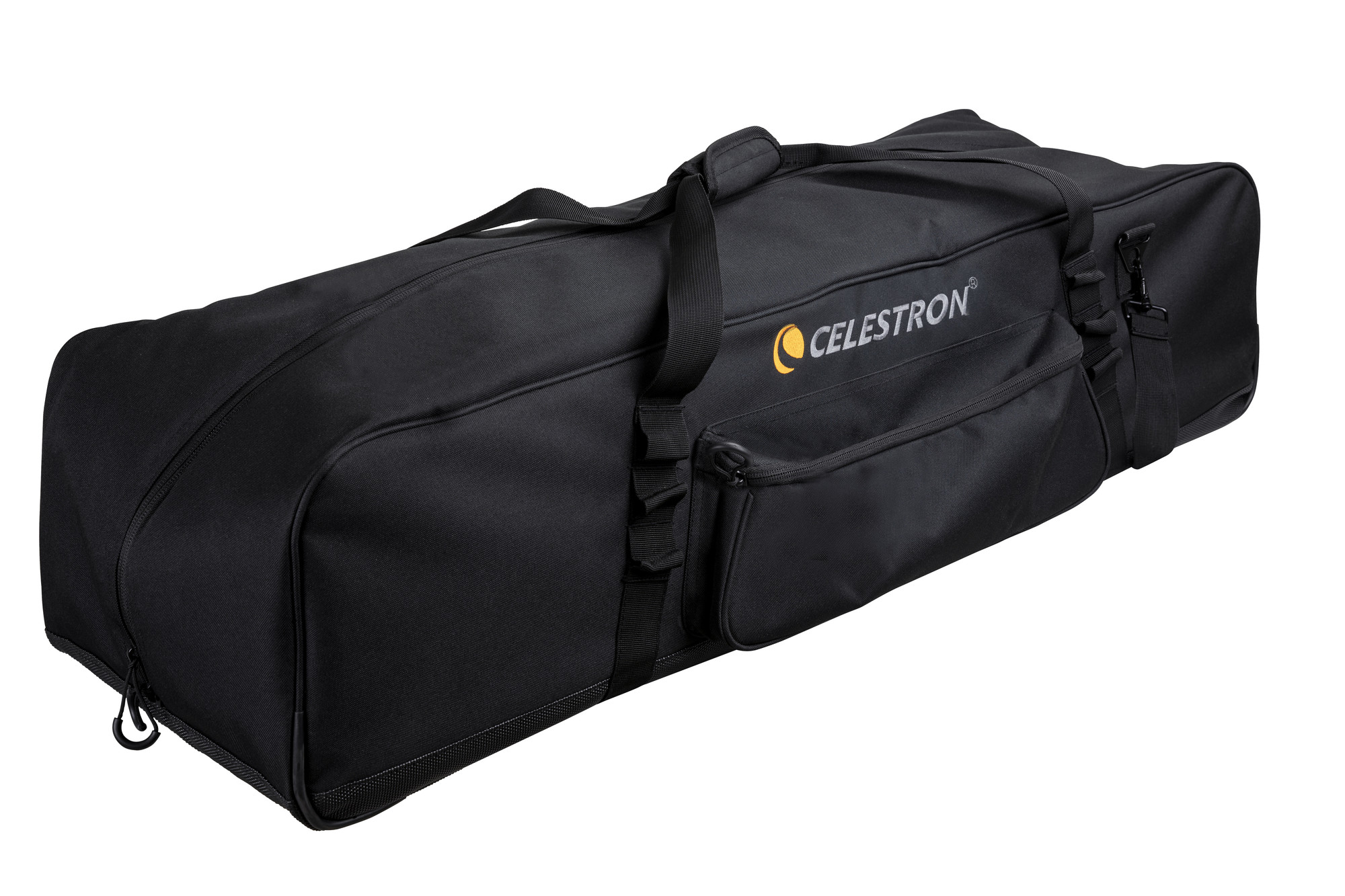 Zusätzlich zu den konfigurierbaren Fächern im Inneren verfügt die Tasche über eine gepolsterte Zubehörtasche im Format 23 * 30 cm (9" x 12") und eine Außentasche mit Reißverschluss, in der Sie Okulare und anderes Zubehör unterbringen können. Schließlich finden Sie an der Außenseite der Tasche angenähte Stoffschlaufen. Mit diesen können Sie zum Beispiel mit Karabinerhaken noch mehr Zubehör an der Außenseite der Tasche befestigen.