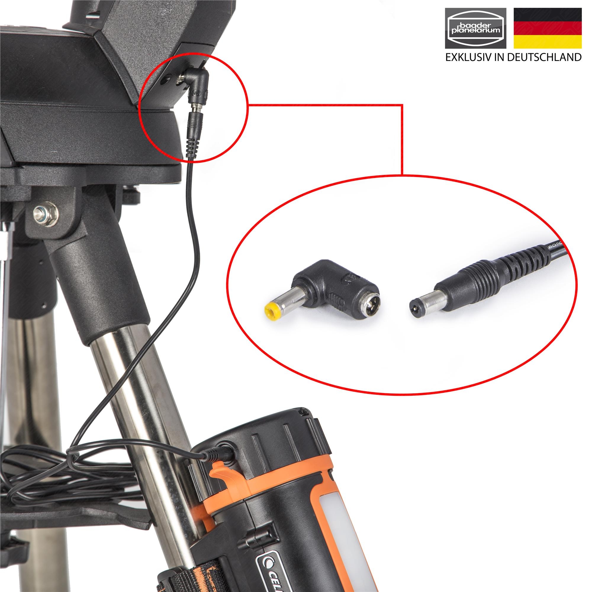 - Prostredníctvom prípojky pre teleskopy dodáva až 3 A - čo postačuje aj pre výkonné montážne prístroje so zvýšenými nárokmi na napájanie. Dvojmetrový kábel je vhodný pre všetky počítačom riadené montáže Celestron a všetky ostatné montáže s 12 V pripojením napájania, priemerom zástrčky 2,1 x 5,5 mm, kladnou koncovkou (plus vnútri), ktoré nevyžadujú viac ako 3A - vrátane EQ-5 a EQ-5 AZ.