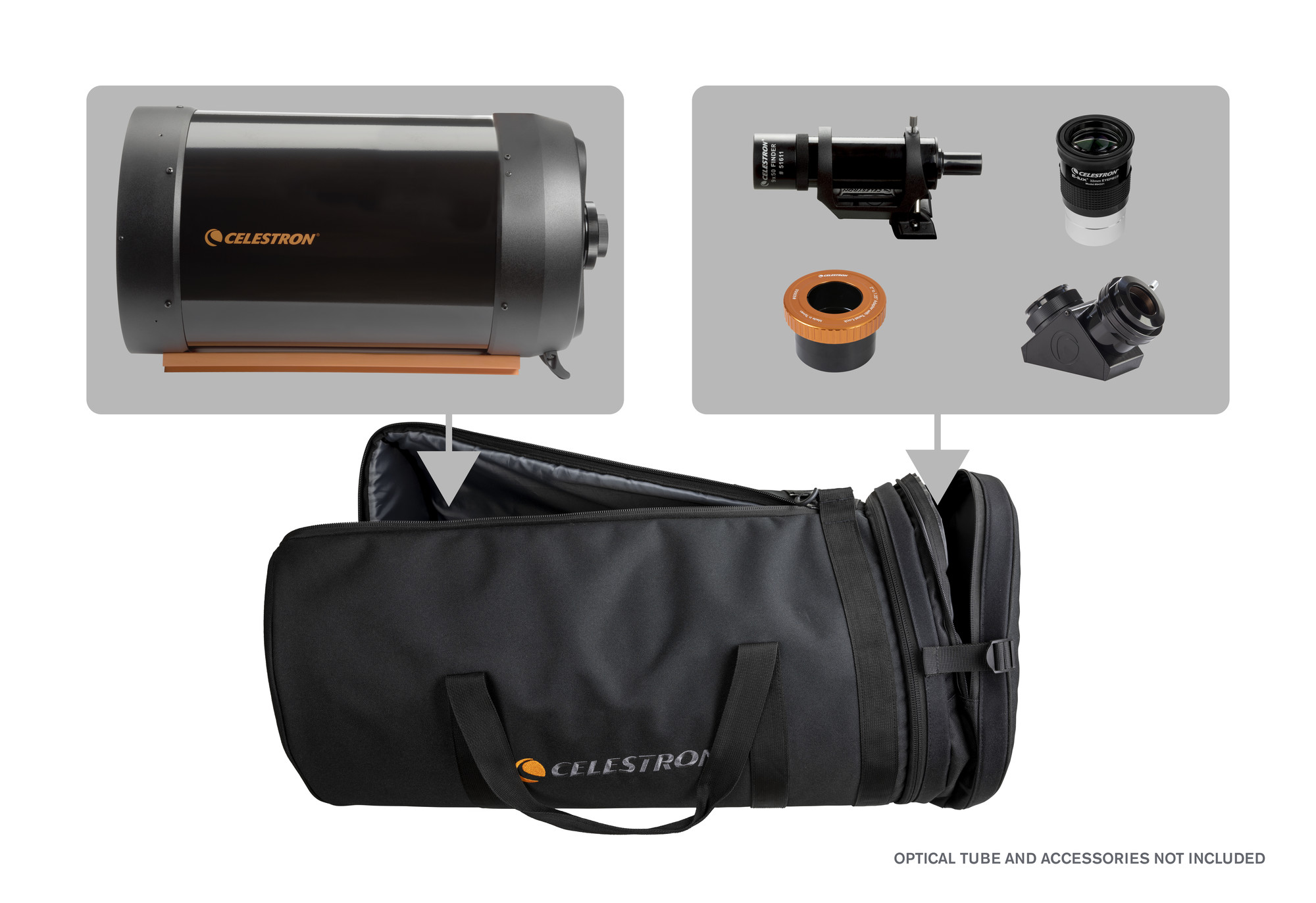 Diese Tragetsche kann die meisten 11"-Optiken mit einer Länge von weniger als 63,5 cm aufnehmen, einschließlich dieser Celestron-Teleskope:
