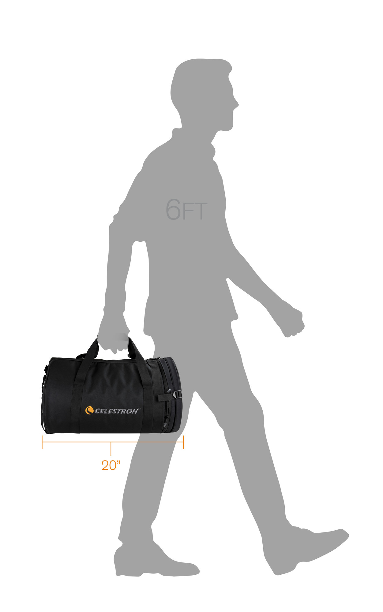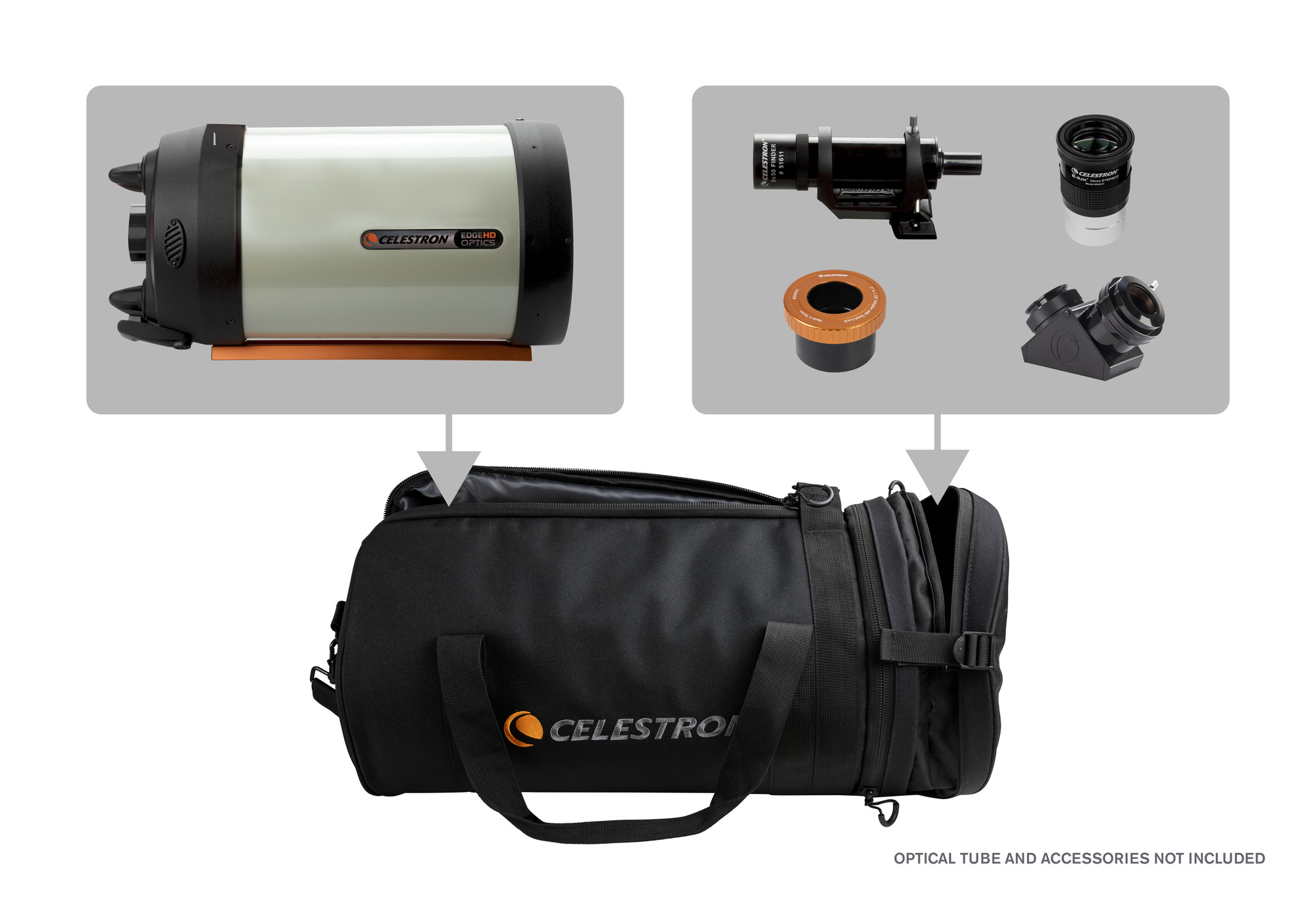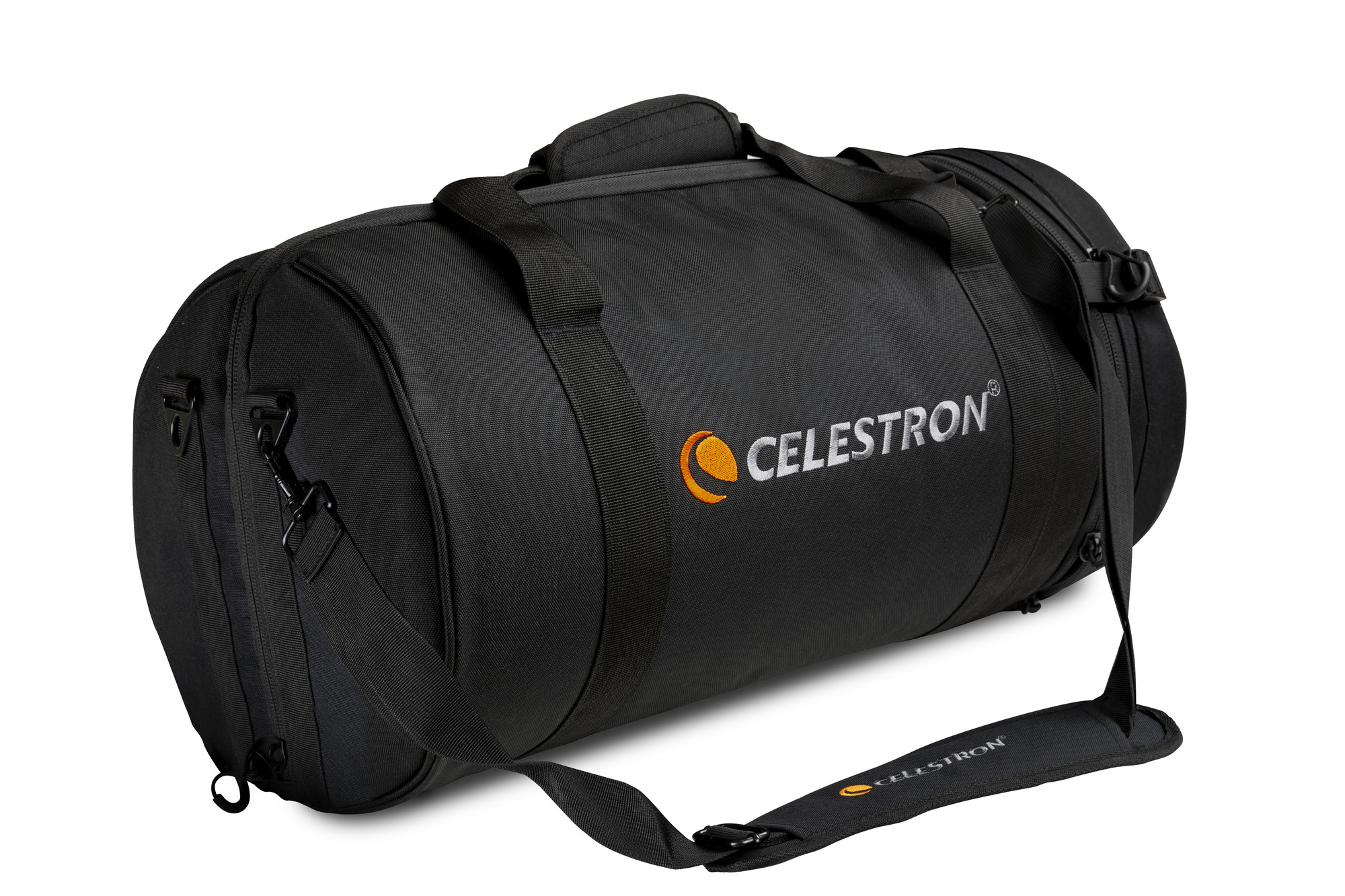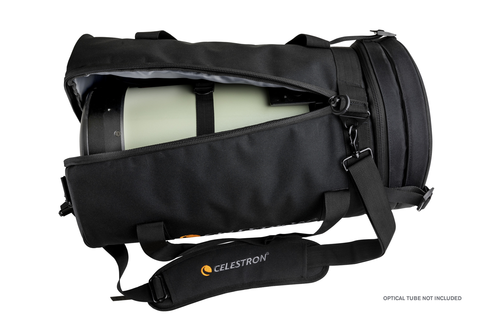 Diese Tragetasche kann die meisten 8"-Optiken mit einer Länge von weniger als 45,5 cmaufnehmen, einschließlich dieser Celestron-Teleskope: