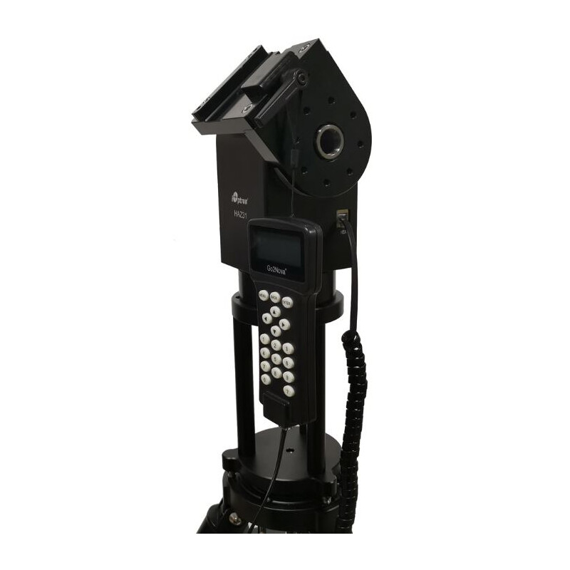 Nový HAZ31 Strain Wave od iOptronu je alt-azimutový držiak s plnou funkciou GoTo a ďalšími inovatívnymi funkciami. Je kompaktný a ľahký s hmotnosťou 3,7 kg, ale napriek tomu unesie až 14 kg užitočného zaťaženia. To z neho robí skvelý cestovný držiak na vizuálne použitie. Známa technológia Go2Nova® od spoločnosti iOptron ponúka aj databázu s 212 000 objektmi, ako aj kompatibilitu s technológiou ASCOM a vďaka integrovanej sieti WLAN aj ovládanie prostredníctvom tabletu alebo smartfónu pomocou SkySafari, Raspberry Pi alebo INDI. Dvojité sedlo Vixen/Losmandy a stabilná konštrukcia umožňujú použitie rôznych ďalekohľadov až do strednej veľkosti a dokonca aj pripojenie veľkých ďalekohľadov! Multifunkčné uchytenie holubičieho chvosta sa dá na držiaku nastaviť buď bočne, alebo horizontálne (zhora), takže je zaručené bezpečné pripevnenie veľkých ďalekohľadov a tiež teleskopov s dlhšou ohniskovou vzdialenosťou. Protizávažná tyč s protizávažím nie je bezpodmienečne nutná!