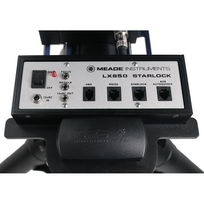 Montáž Meade LX850 so systémom Starlock: Ekvatoreálna montáž LX850 z vysokopevnostného hliníka a nehrdzavejúcej ocele ponúka presnú sledovaciu platformu aj pre väčšiu optiku. Túto presnosť dosahujú 147 mm šnekové kolieska a 17 mm šneky. Počítačové riadenie GPS s podporou systému AutoStar II umiestňuje nebeské objekty z databázy 144 000 objektov.