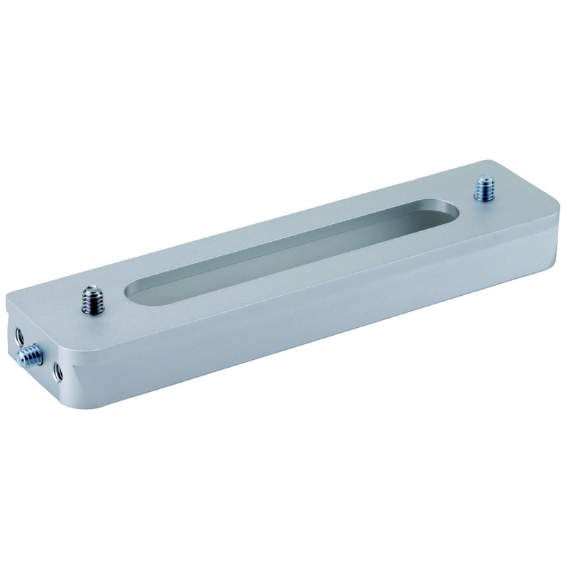 - Lišta ponúka niekoľko možností pripojenia fotoaparátov prostredníctvom fotografických závitov. Vďaka tomu môžete jednoducho pripojiť fotoaparát prostredníctvom guľovej hlavy (voliteľne k dispozícii). Na jeden koniec koľajnice môžete tiež pripojiť fotoaparát/guľovú hlavu a na druhý koniec voliteľnú tyč s protizávažím (pozri odporúčané príslušenstvo).