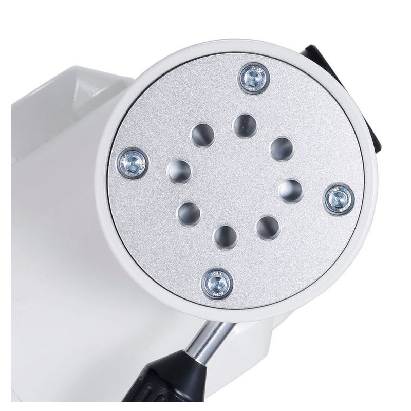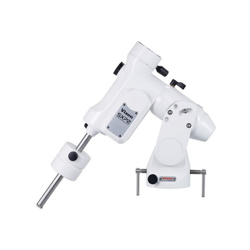 Montážna hlava má priemer 35 mm a má osem závitových otvorov pre skrutky M8, ktoré sú usporiadané v 45-stupňových intervaloch. Môžete si vybrať, či chcete pripojiť voliteľnú montážnu dosku alebo voliteľnú svorku s holubím chvostom. Otvory so závitom tiež znamenajú, že možno použiť a namontovať montážne lišty od iných výrobcov ako od spoločnosti Vixen.