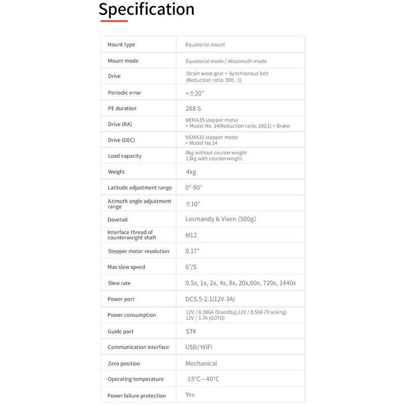 ZWO ponúka Harmonickú rovníkovú montáž AM3, prenosnú montáž pre astrofotografiu. Montáž váži menej ako 4 kg a unesie teleskopy s hmotnosťou do 8 kg bez protizávažia. S protizávažím a tyčou protizávažia (nie je súčasťou dodávky) môže montáž niesť dokonca teleskopy s hmotnosťou až 13 kg. Na tejto vzrušujúcej montáži sa pracovalo niekoľko rokov a boli na ňu vydané rôzne patenty.