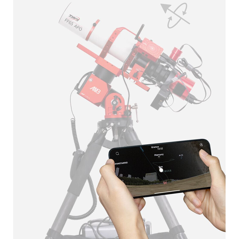 Všetky funkcie držiaka možno ovládať prostredníctvom smartfónu. AM3 samozrejme mimoriadne dobre spolupracuje so systémom ASIAir od spoločnosti ZWO. So systémom ASIAIR možno všetko od kamery a automatického navádzania až po držiak ovládať prostredníctvom aplikácie pomocou smartfónu alebo tabletu. Držiak sa dá ovládať aj pomocou príručného boxu bez smartfónu. Ručný box funguje samozrejme aj bezdrôtovo.