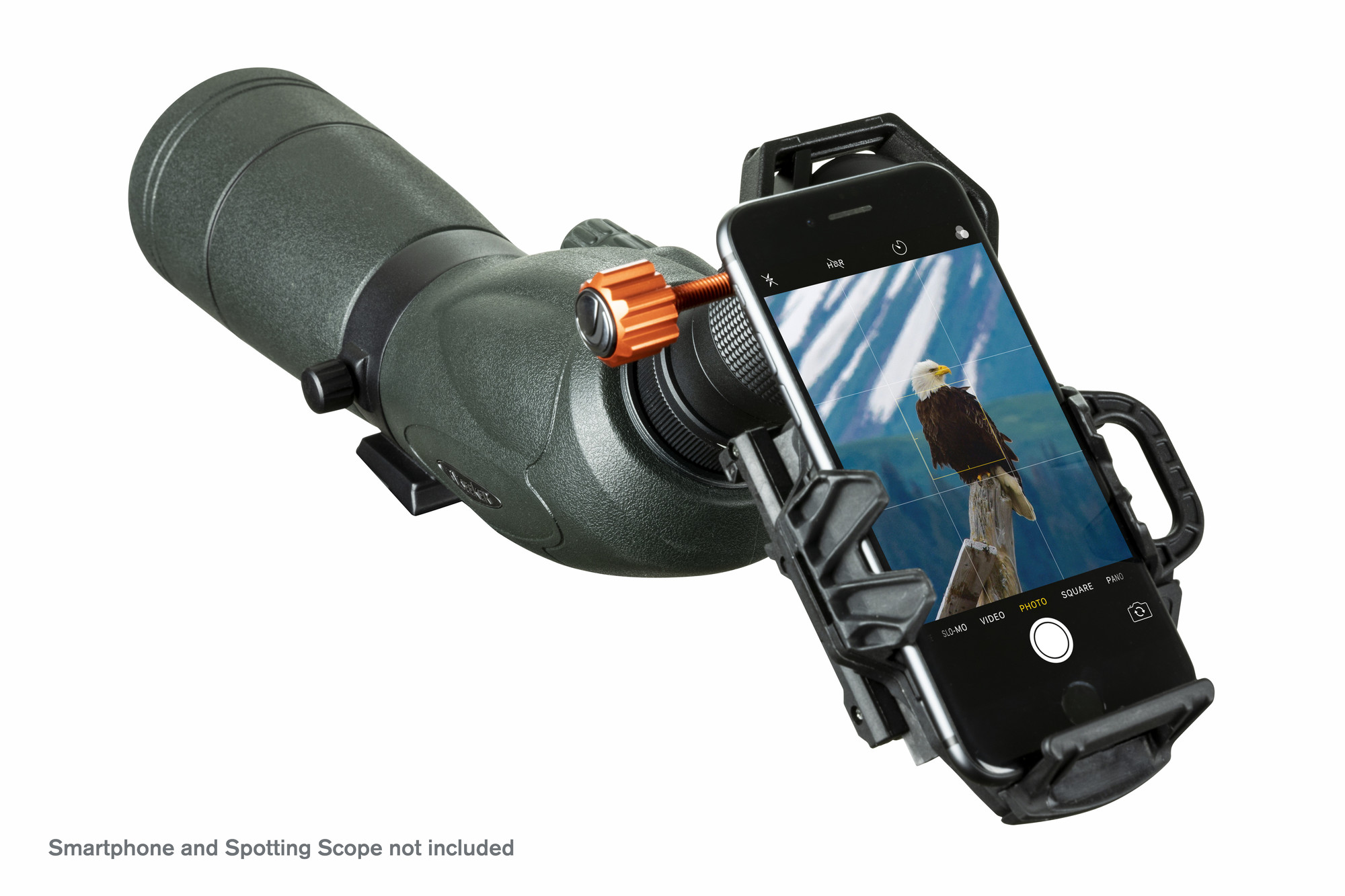 Sie können Ihr Bild auch von Hoch- auf Querformat umschalten, indem Sie einfach die gepolsterte Okularklemme drehen und die X- und Y-Achse neu einstellen, um Ihr Telefon mit dem Okular auszurichten.