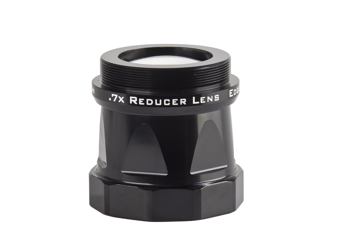 - Der EdgeHD 0,7x Reducer macht z.B. Ihr EdgeHD 1100 Schmidt-Cassergrain um eine volle Blende schneller als f/10 und halbiert so die Belichtungszeit welche zum Erzielen der gleichen Bildhelligkeit nötig wäre