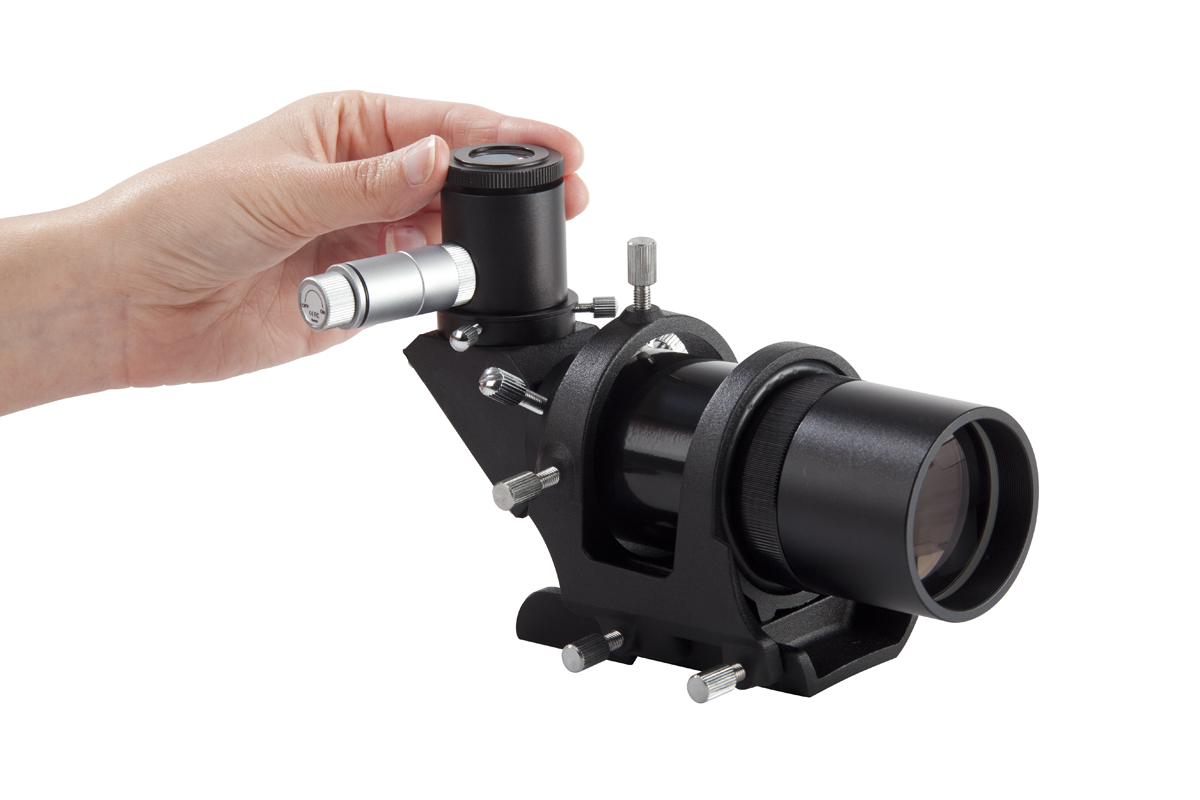 Der beleuchtete Celestron 9x50 90°-Sucher ist eine sinnvolle Ergänzung für vie eSchmidt-Cassegrains. Mit dem aufrechten, seitenrichtigen Bildfeld fällt die Orientierung am Himmel leicht, und das Okular ist drehbar, sodass Sie immer eine bequeme Einblicksposition finden können.