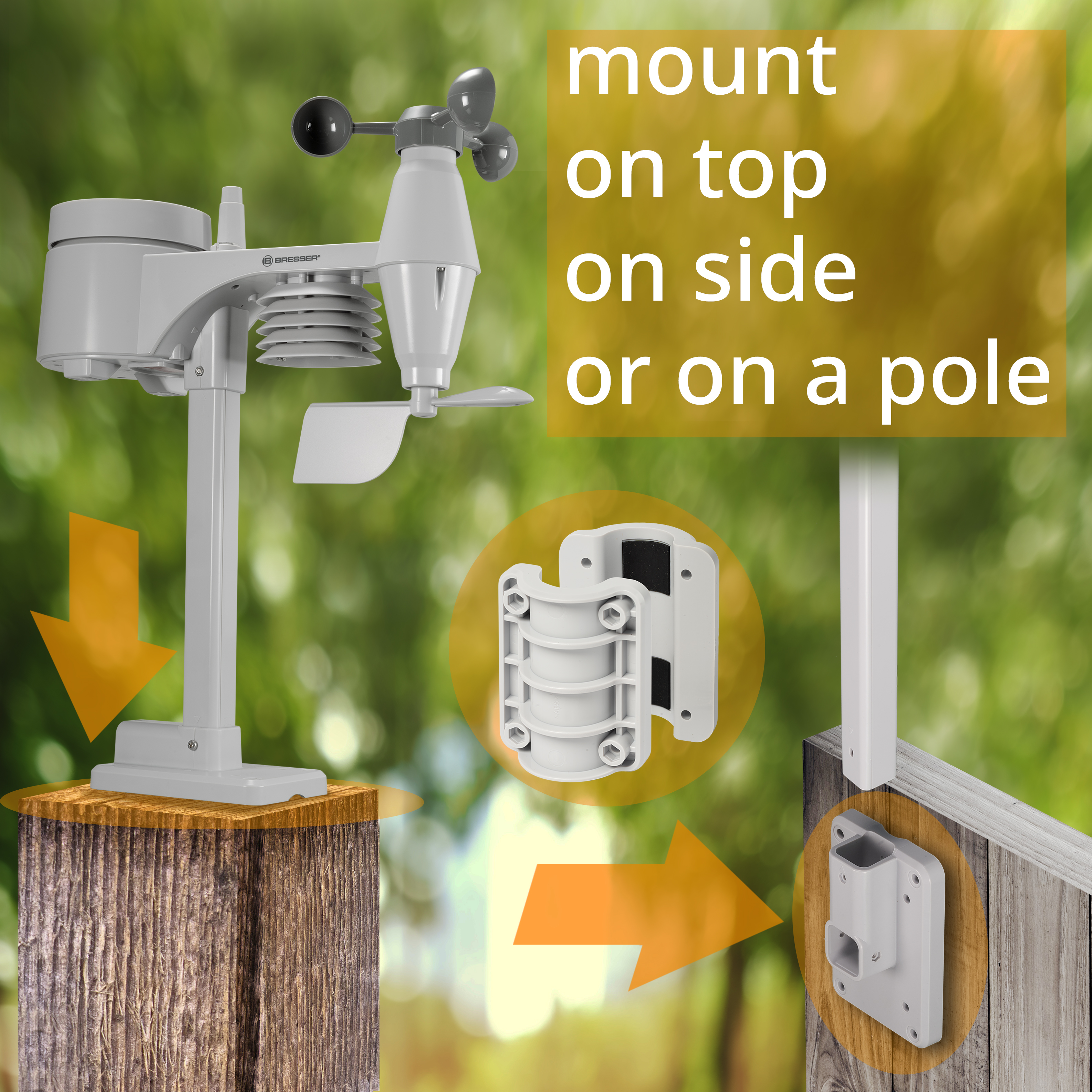 Nová meteostanica BRESSER 5 v 1 Comfort s farebným displejom jedinečným spôsobom kombinuje kompaktný dizajn s komplexným informačným servisom. Multifunkčný vonkajší snímač s veľmi kompaktným dizajnom možno nainštalovať takmer na ľubovoľné miesto a ušetriť tak miesto. Potrubná svorka a skrutky na montáž na stĺpy (priemer potrubia cca 25-33 mm), ako aj podstavec na rovnú montáž sú už súčasťou dodávky!