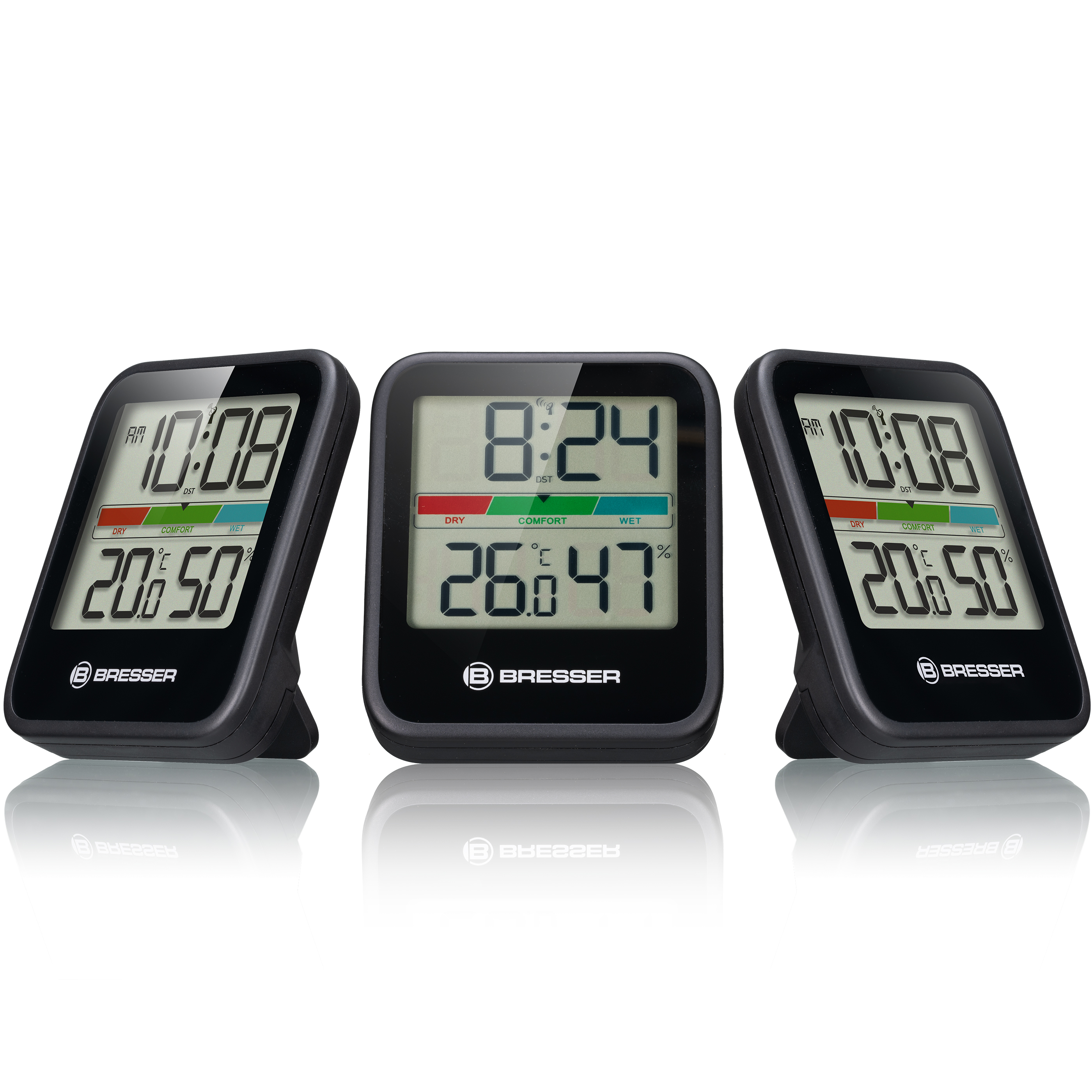 So súpravou BRESSER Climate Monitor Thermo- / hygrometer DCF 3 sa môžete tešiť na troch praktických pomocníkov pre vašu príjemnú klímu v interiéri .
