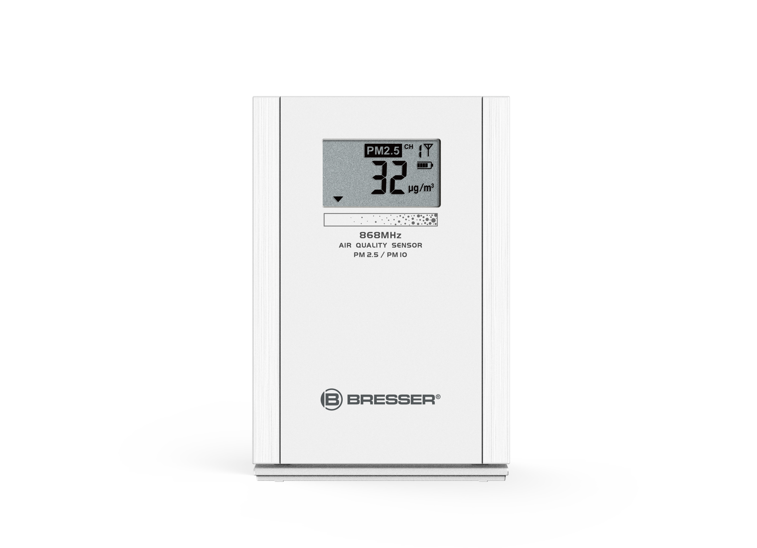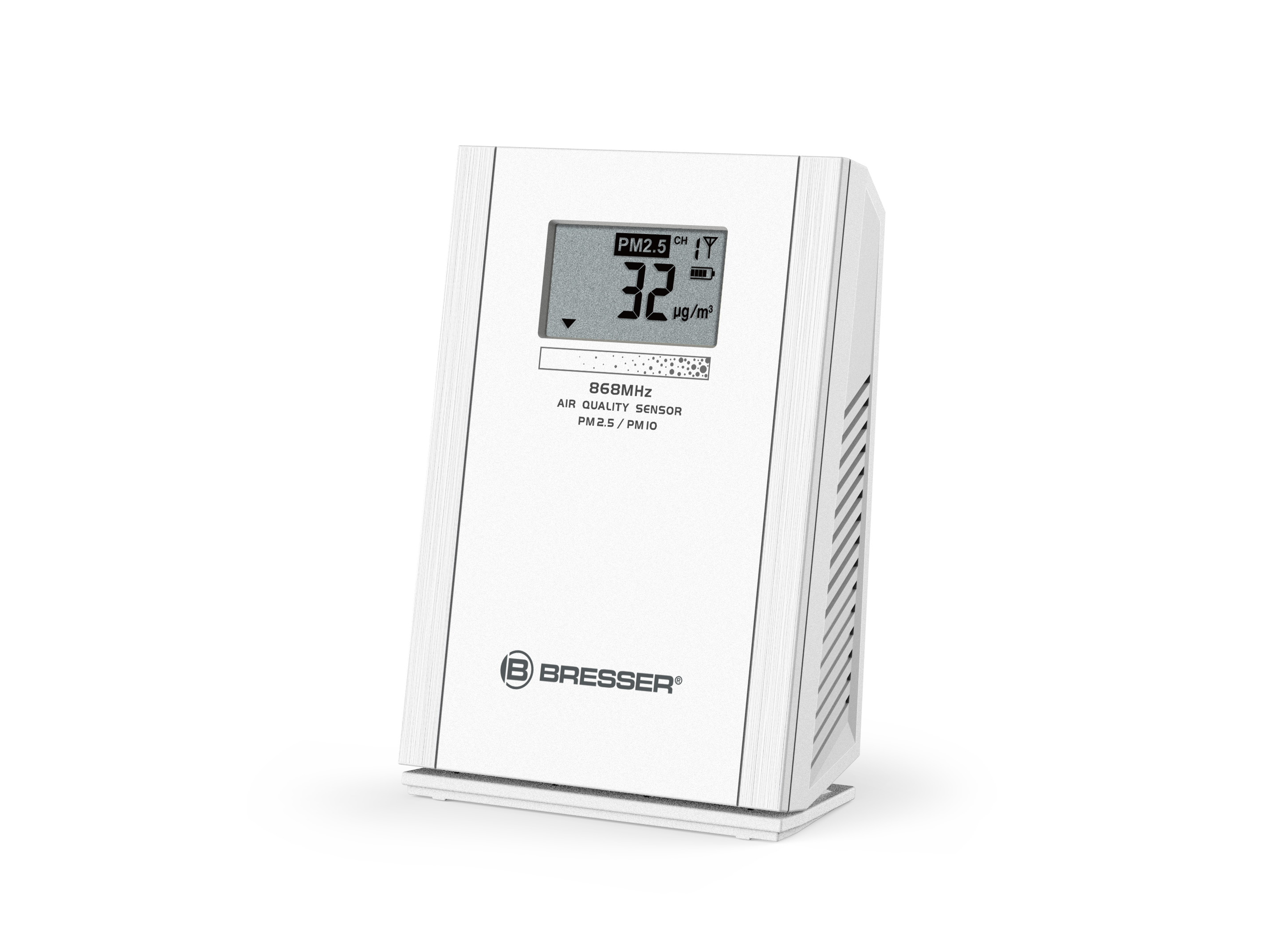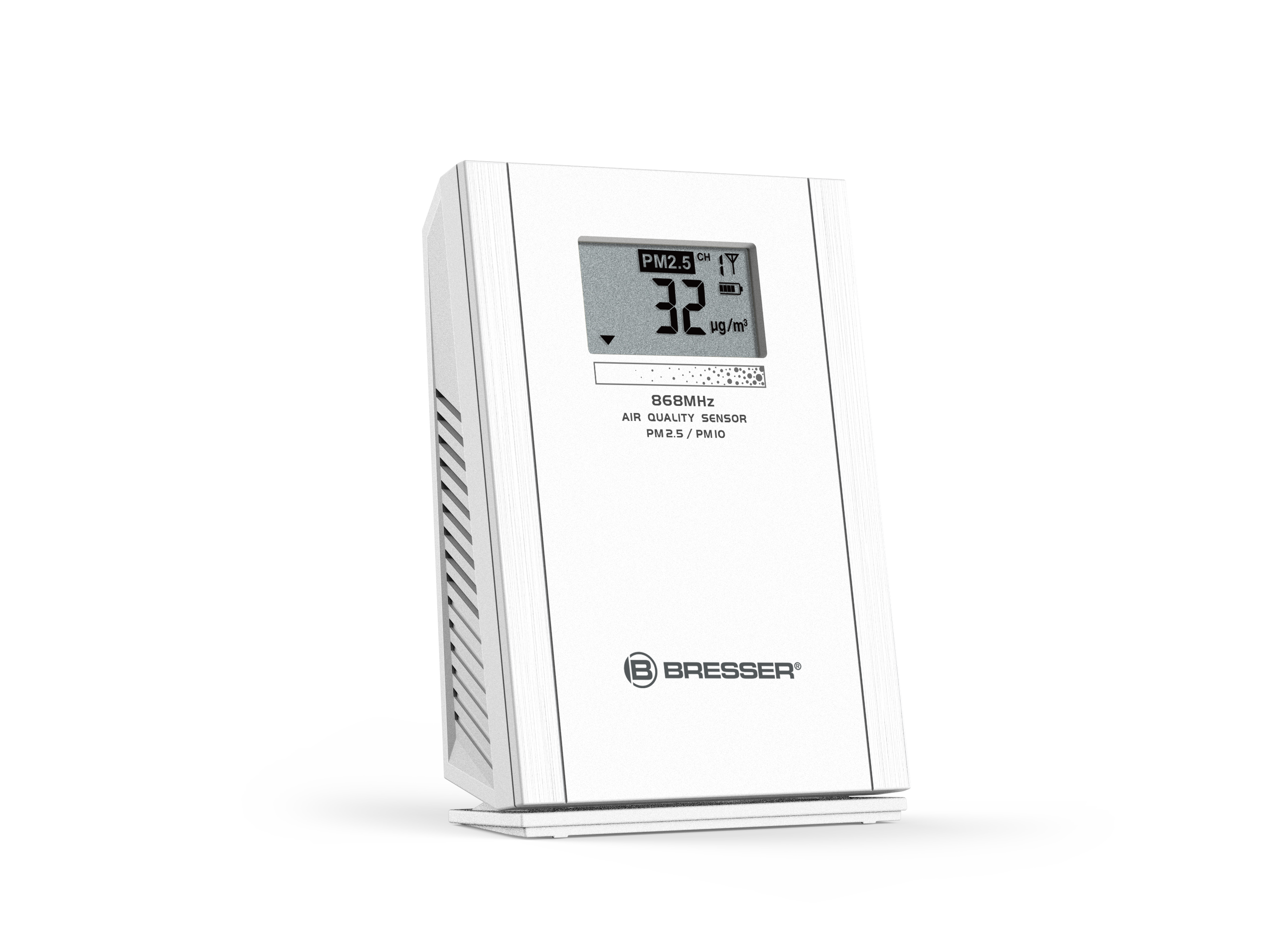 Užitočný doplnok k vašej meteostanici BRESSER alebo praktické samostatné riešenie: S meračom jemného prachu PM2,5/10 môžete pokojne dýchať. Vysoko presné meracie zariadenie totiž spoľahlivo detekuje znečistenie ovzdušia dvoma typmi zdravotne významných častíc: časticami s priemerom menším ako 10 μm (PM10 ) a menším ako 2,5 μm (PM2,5). Výsledky meraní - aktuálna hodnota a priemerná úroveň častíc za posledných 24 hodín - sa zobrazujú na integrovanom displeji a vo vašom existujúcom meteorologickom centre. Základňová stanica môže byť umiestnená až do vzdialenosti 150 m.