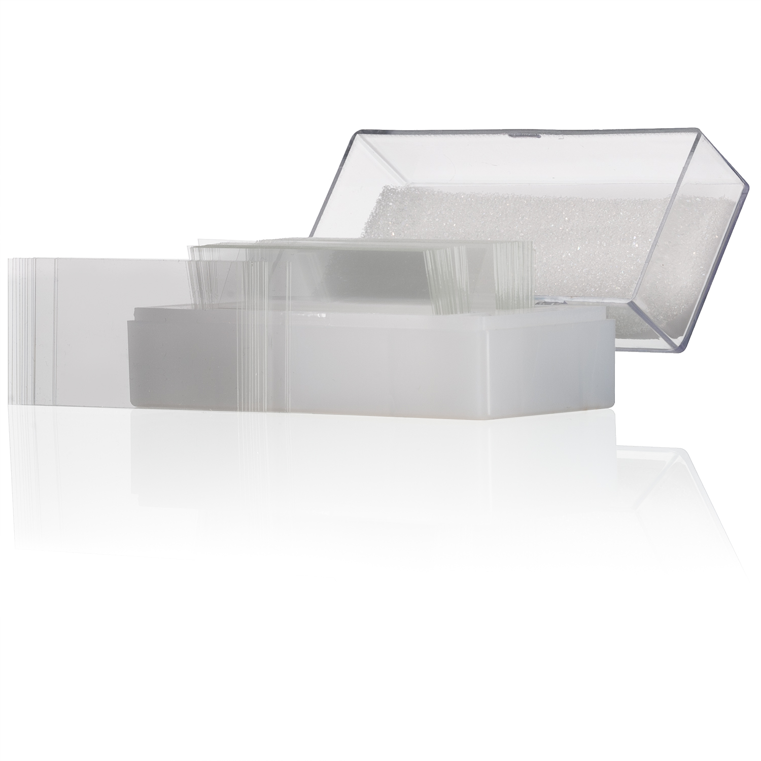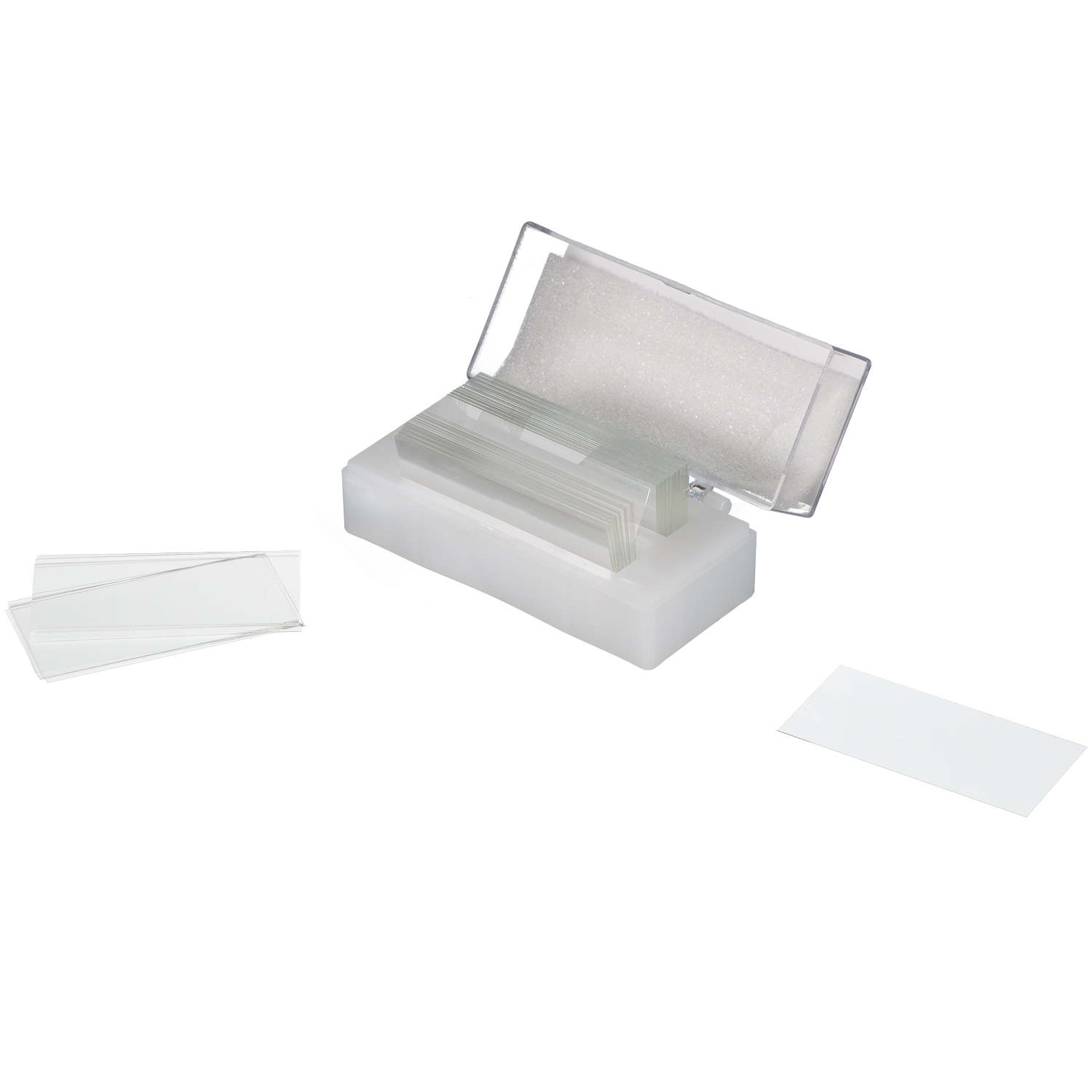 Borosilikátové sklo je čisto biele, veľmi hladké a má vynikajúcu povrchovú úpravu a optickú kvalitu. Krycie sklo nie je len krytom pre vzorku, ale v skutočnosti pôsobí ako optický prvok, a preto má vždy vplyv na kvalitu obrazu. Väčšina objektívov je podľa toho vypočítaná a zohľadňuje hrúbku krycieho skla (možno ju vyčítať z odtlačku 0,17 na objektíve mikroskopu).