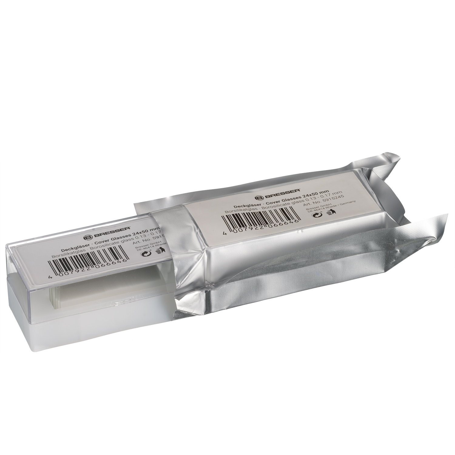 Krycie sklíčka BRESSER 24×50 mm z borosilikátového skla – 100 ks