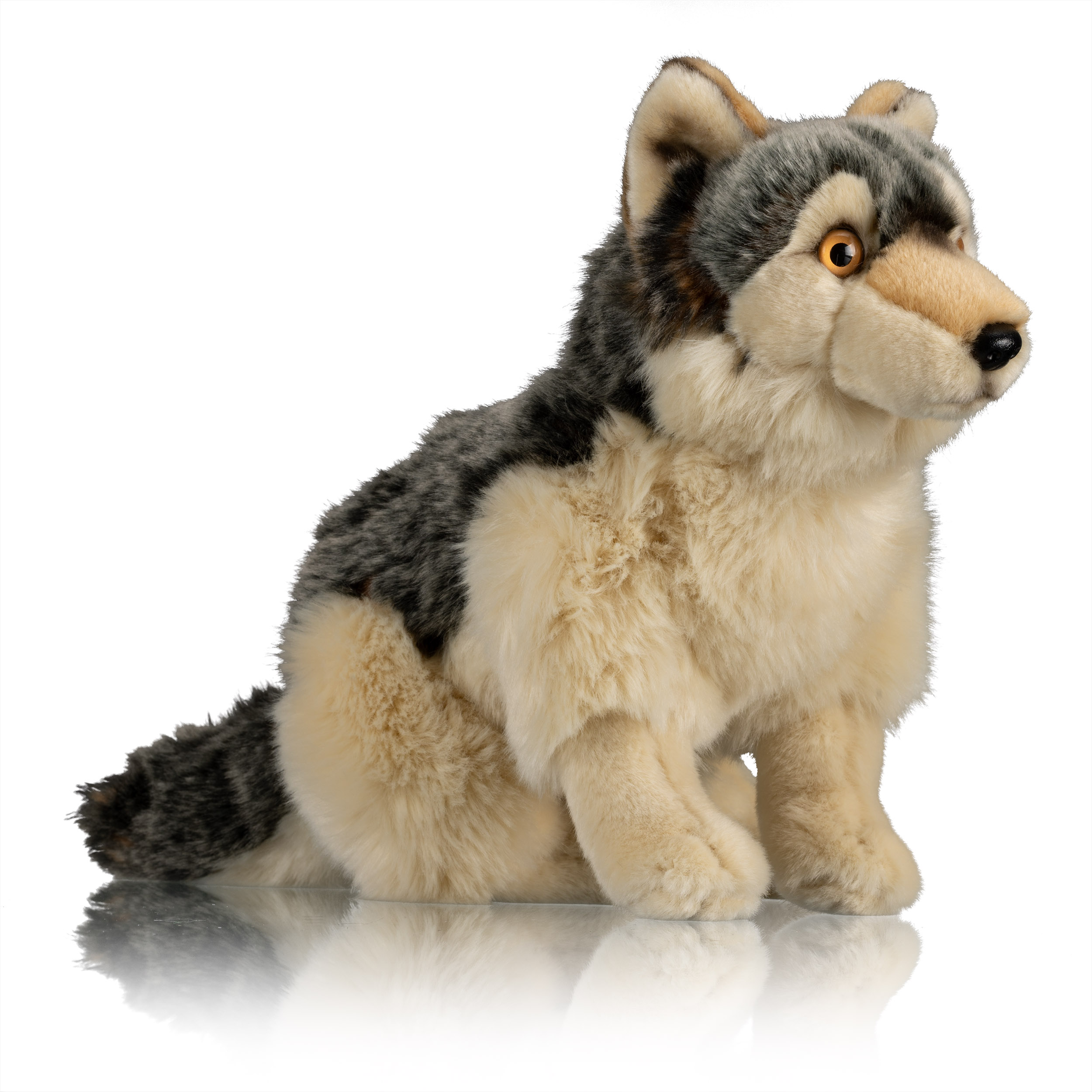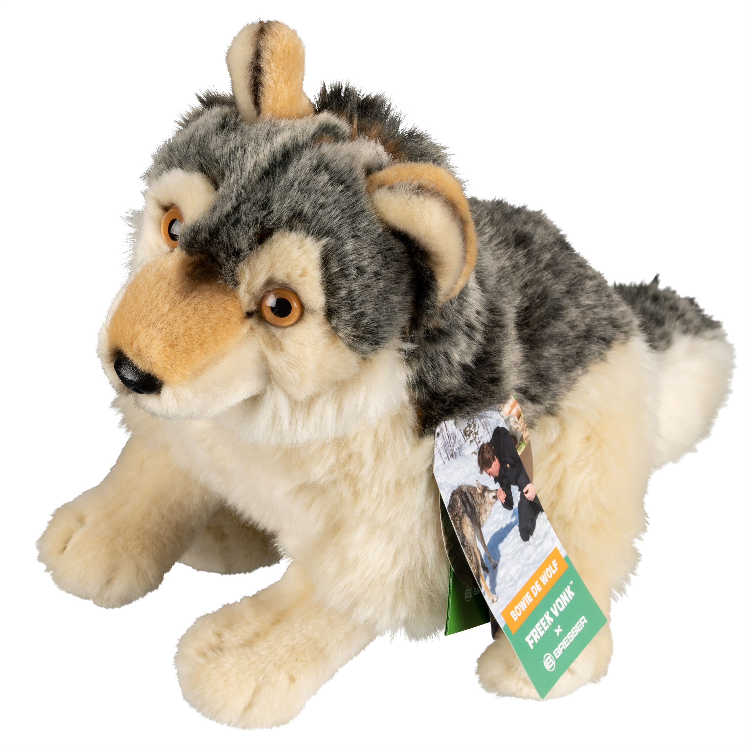 Vlk Bowie je prítulný vlk s veľmi jemnou srsťou. Plyšovú hračku môžete prať aj v práčke. Bowie je dlhý približne 40 cm
