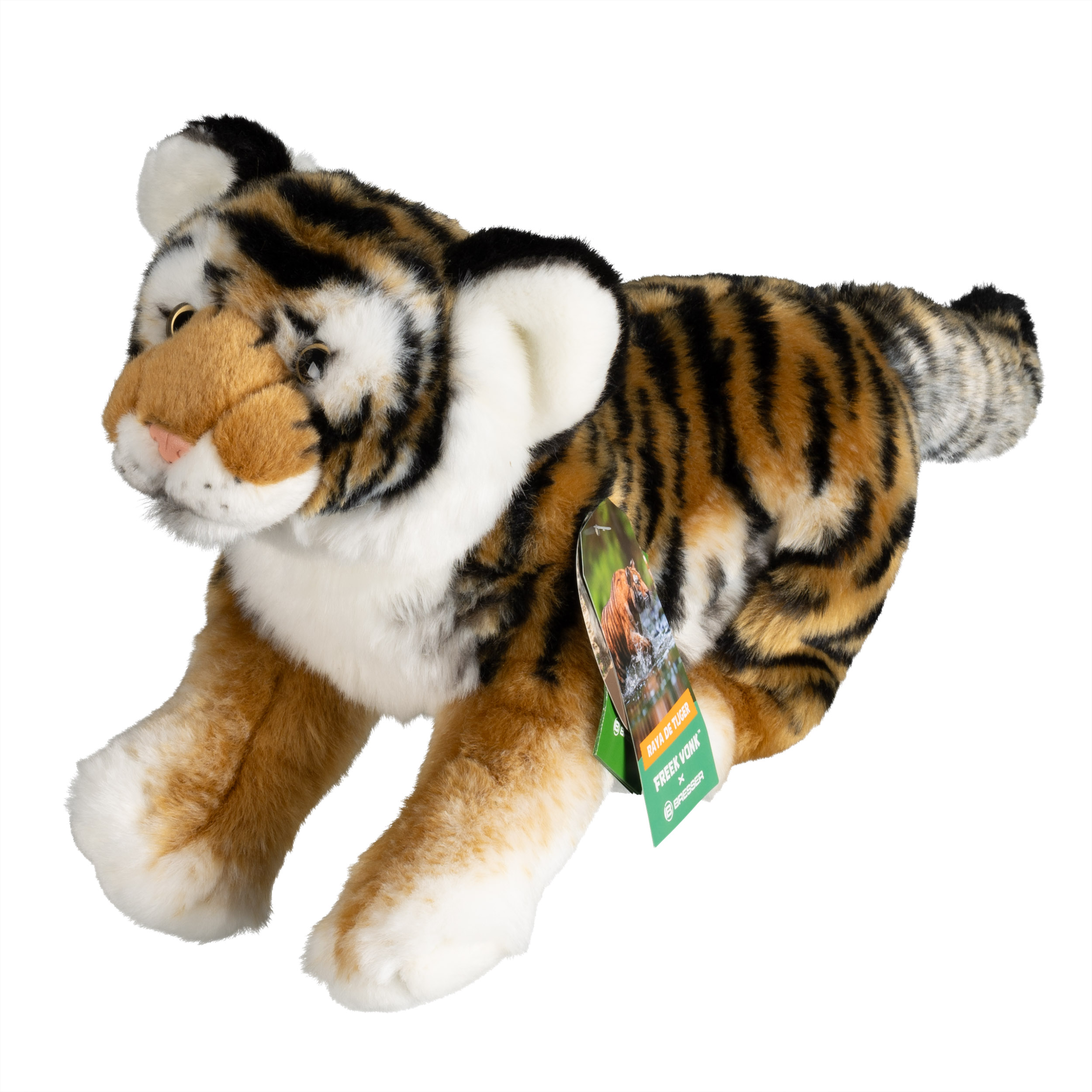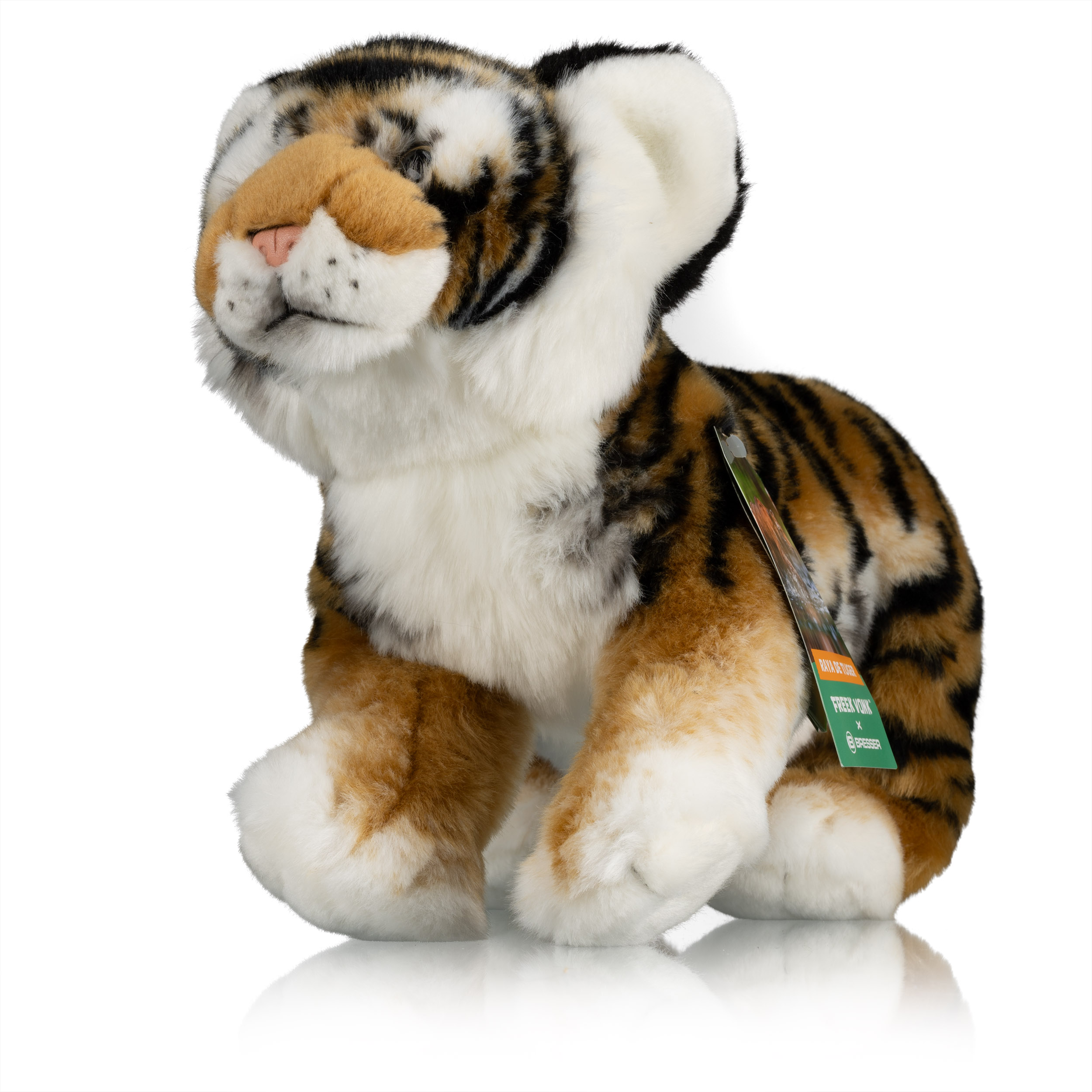 Tiger Raya je prítulný tiger s veľmi jemnou pruhovanou srsťou, rovnako krásnou ako srsť skutočného tigra. Plyšovú hračku môžete prať aj v práčke. Raya je dlhá približne 50 cm