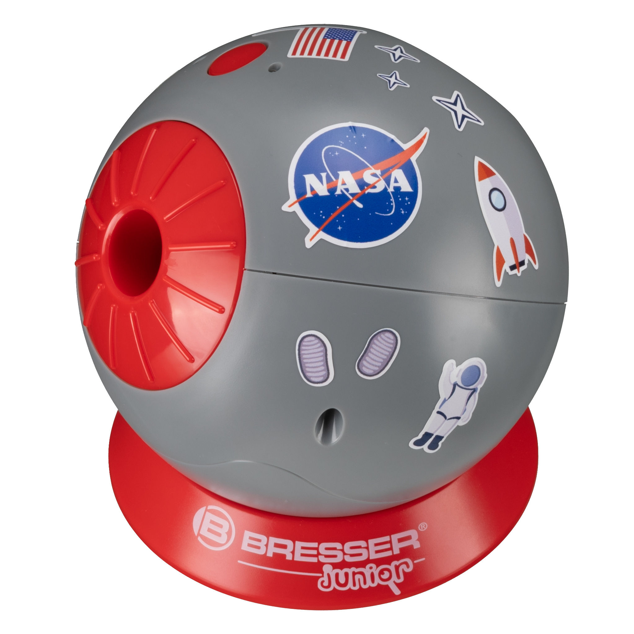 Rovnako ako americká vesmírna agentúra: Predtým, ako vyrazíte, môžete si vesmírny projektor ozdobiť priloženými samolepkami s raketou, logom NASA a ďalšími skvelými motívmi. Potom je čas vložiť disk a bleskovo vyraziť! Ovládanie je detsky jednoduché: jednoducho otočte posuvný disk a obdivujte ďalší motív.