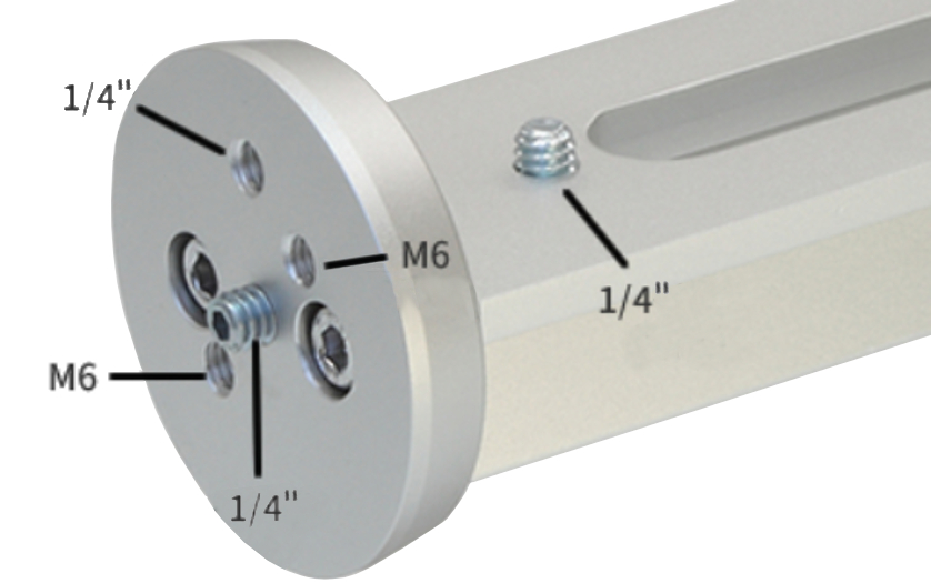 - Otvory: 1x 1/4 palca, 1x 1/4 palca vonkajší závit, 2x M6 vnútorný závit na doske