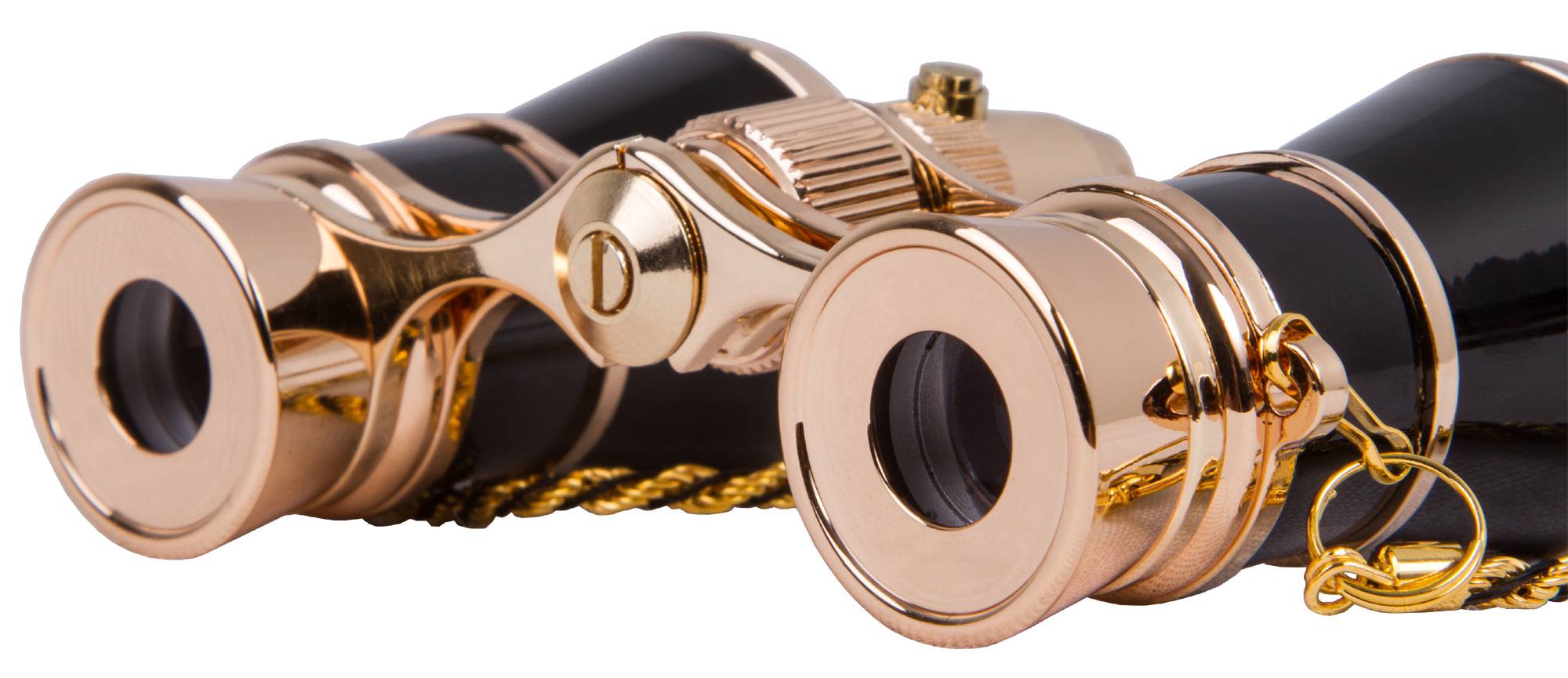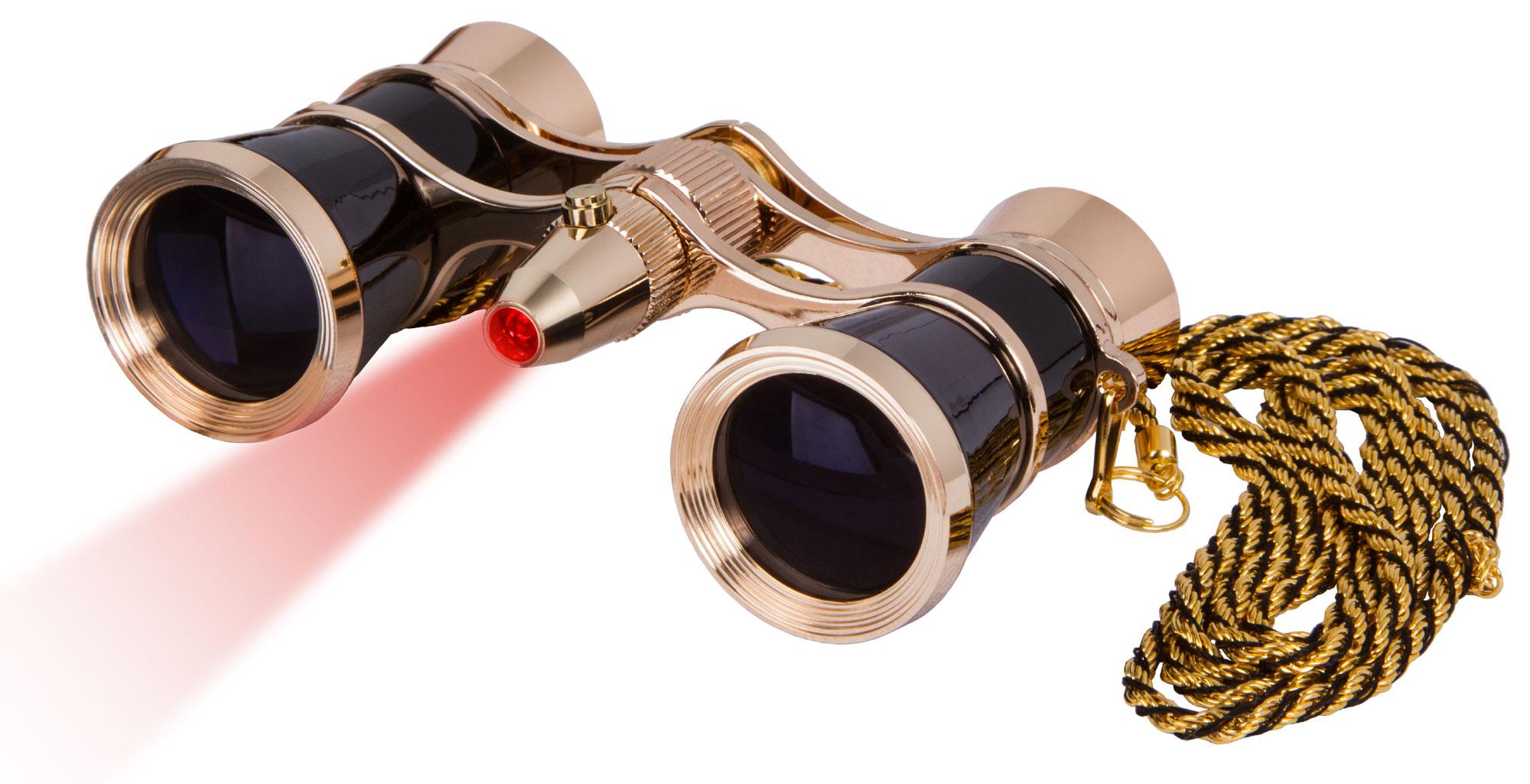 Binokulárny ďalekohľad Levenhuk Broadway 325F je klasický divadelný prístroj. Dodáva sa s krásnou čierno -zlatou retiazkou a charakteristickým systémom podsvietenia.