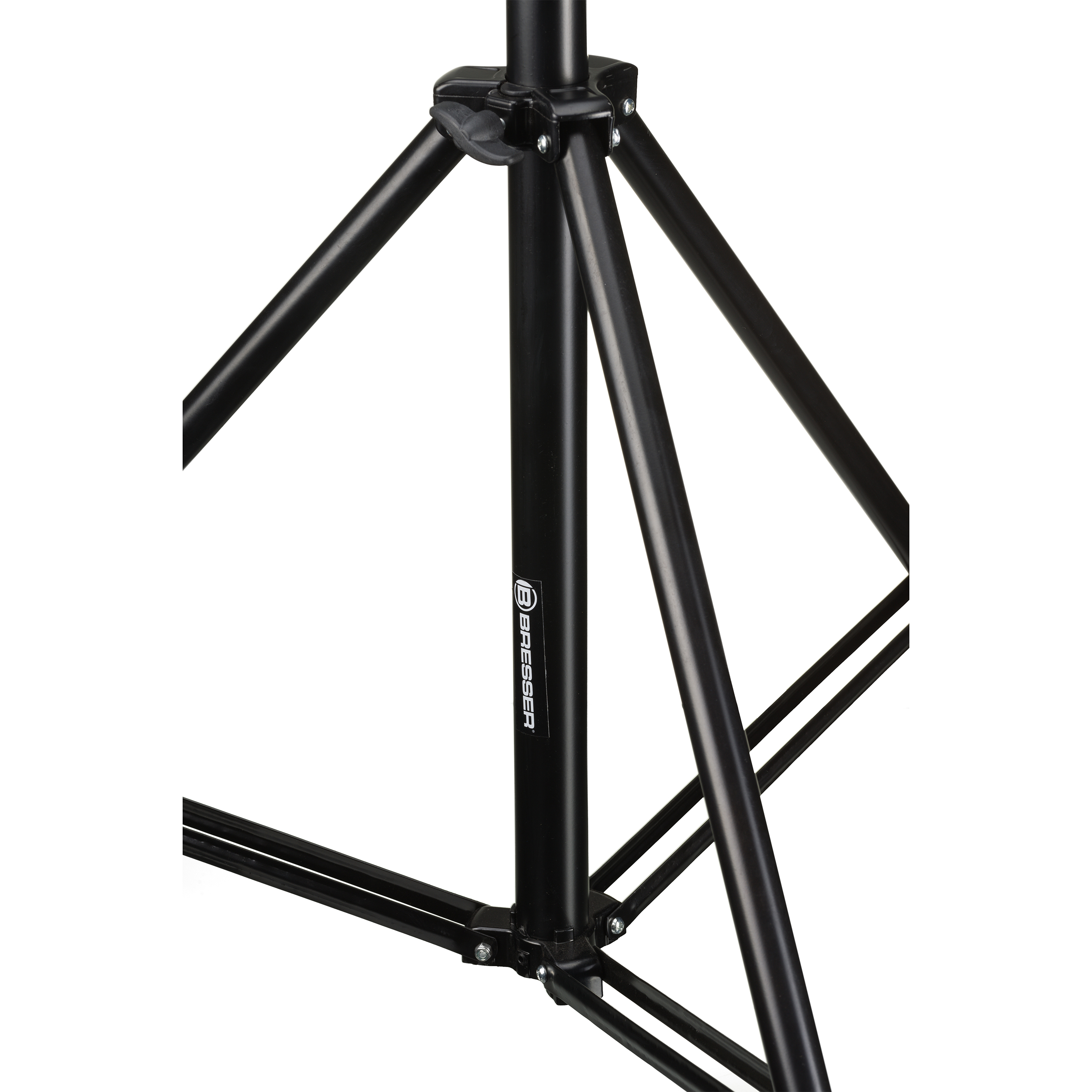 Pevný a stabilný hliníkový statív BRESSER BR-TP280 PRO-1, ktorý sa dá ľahko a kompaktne zložiť. Hliník je povrchovo upravený práškovou farbou v čiernej farbe, aby sa znížili odrazy svetla. Všetky časti a spojky sú vyrobené z kovu.