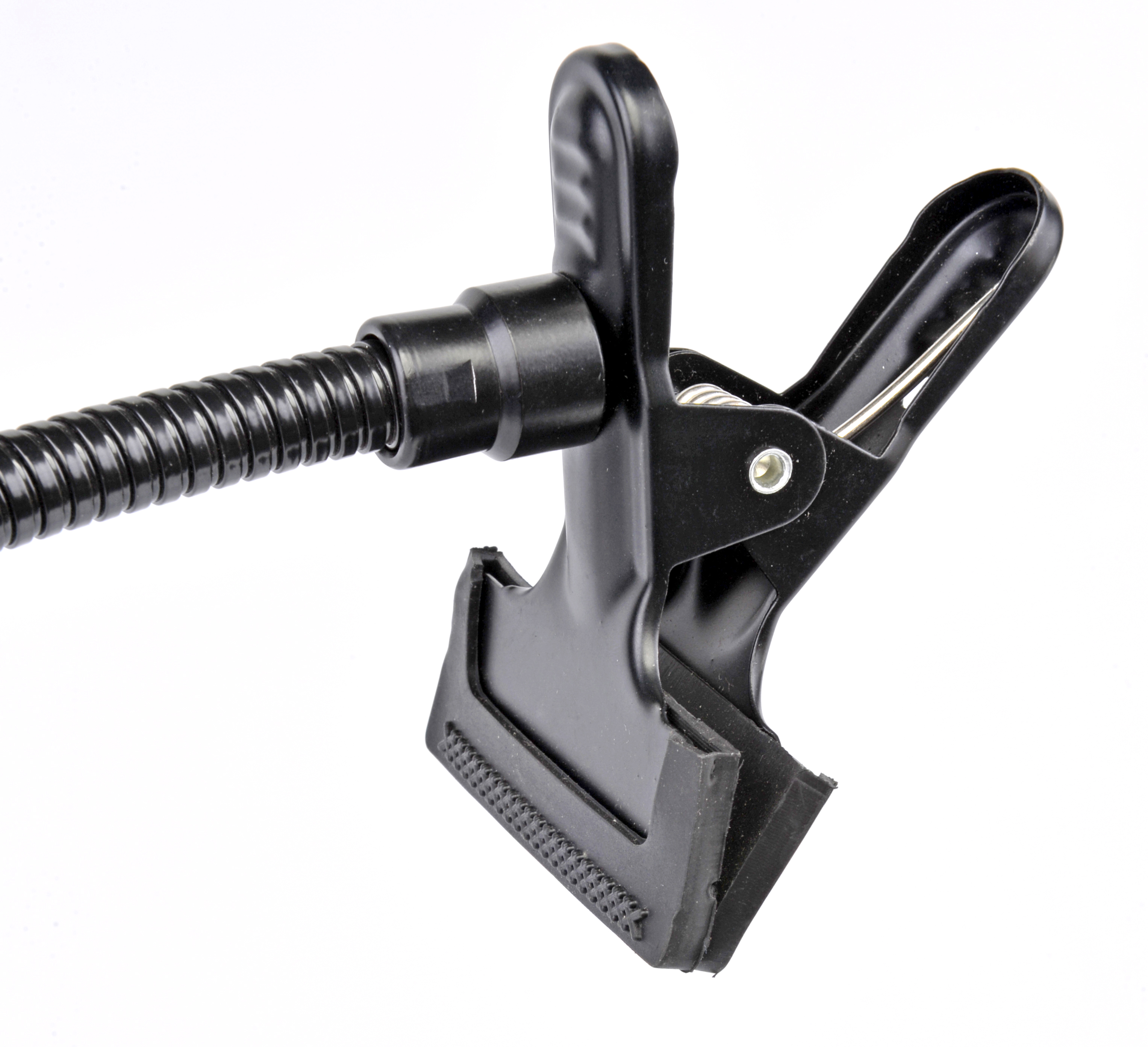 Ohebná časť meria 43 cm a s celkovou dĺžkou 64 cm možno husí krk rýchlo a priestorovo úsporne uložiť. Knihy, reflektory, mikrofóny, vybavenie pre voľný čas a mnoho ďalšieho - neexistuje takmer nič, čo by husí krk BRESSER BR-20 neudržal. Pogumované pružinové svorky so šírkou 7,5 cm a otvorom až 5 cm možno pripevniť aj na trubky a tyče, mikrofónové stojany a statívy lámp.