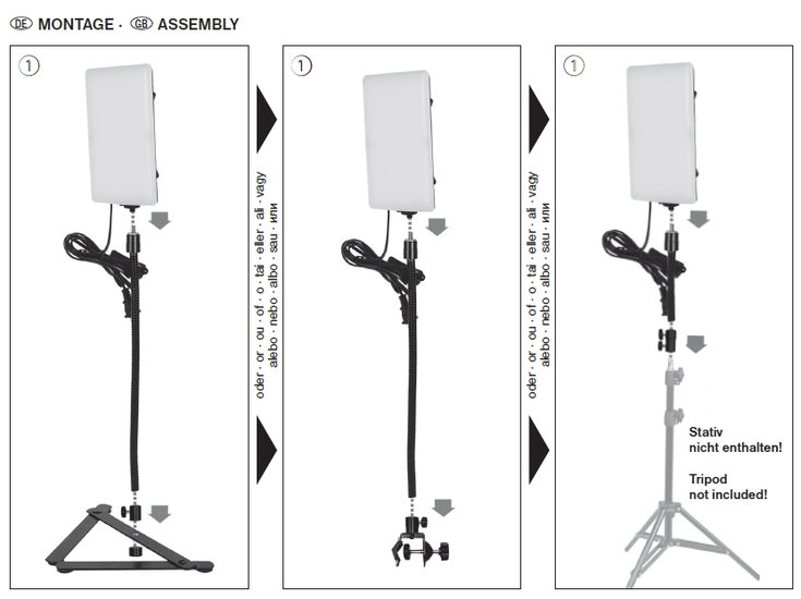 Rôzne dodávané držiaky, stojany a husie krky poskytujú dostatok flexibility pri používaní.