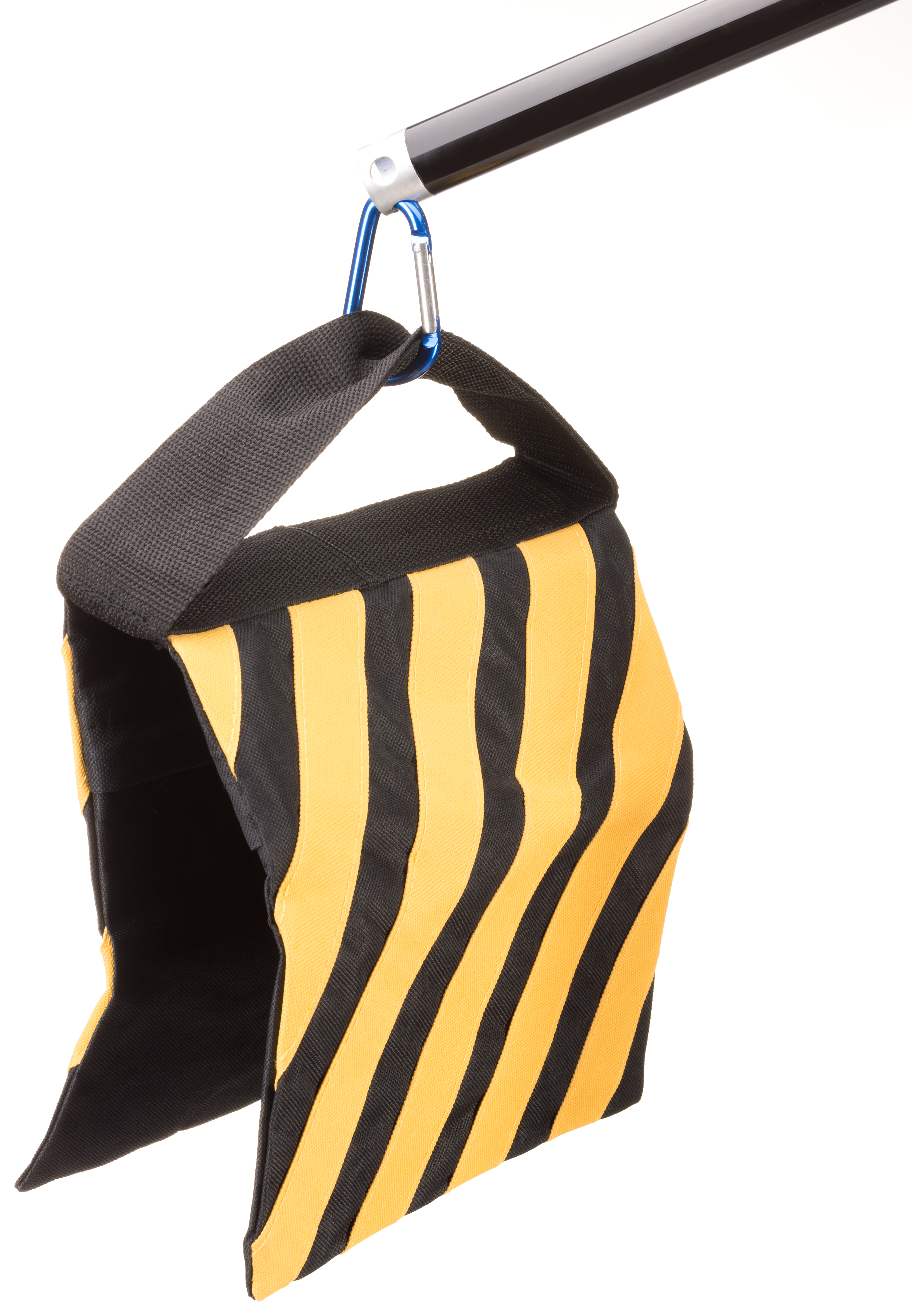 Vrecko s protizávažím sa dá zaťažiť pieskom alebo fľašami s nápojmi a poskytuje potrebnú stabilitu s maximálnou nosnosťou až 4 kg.