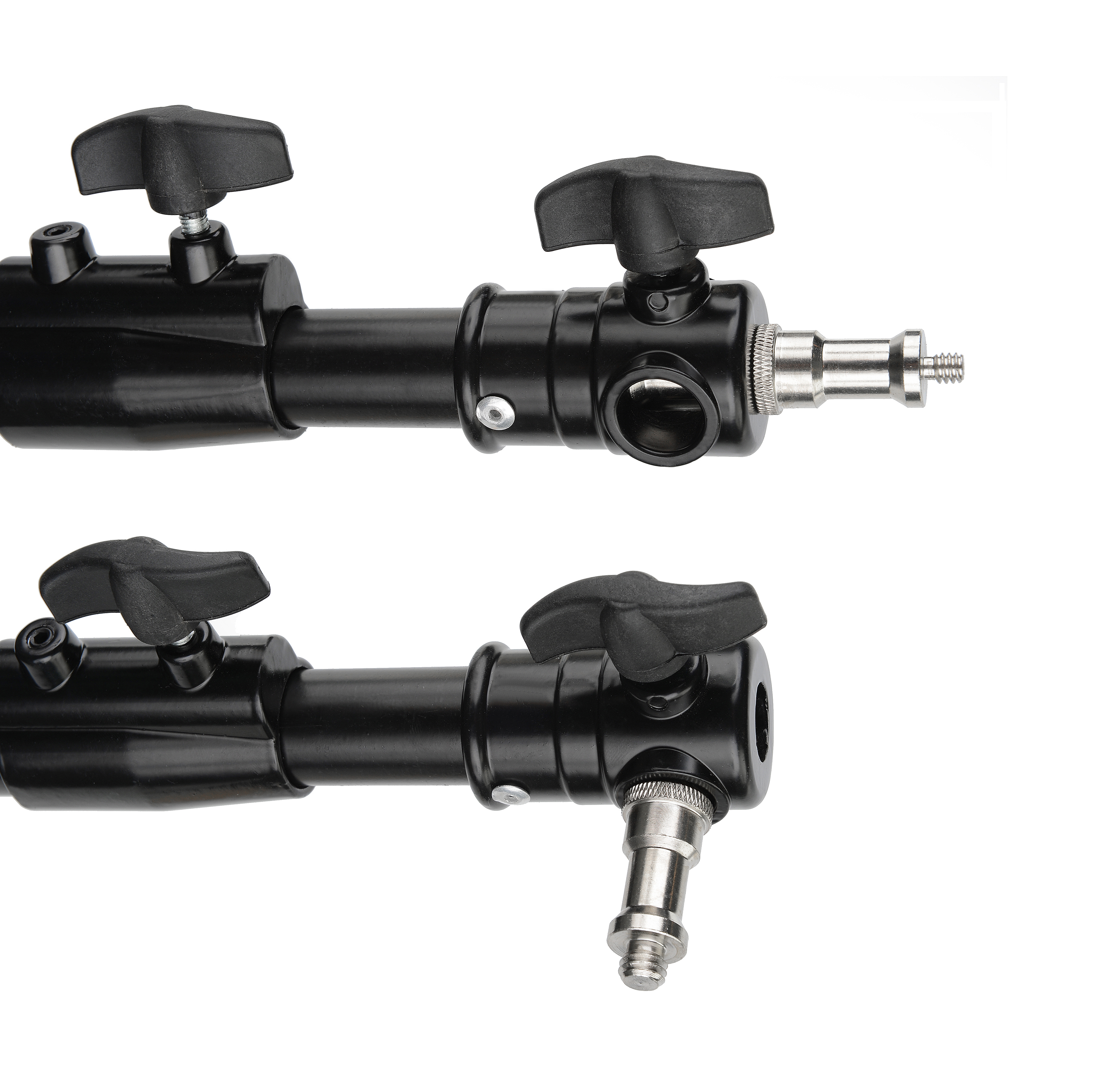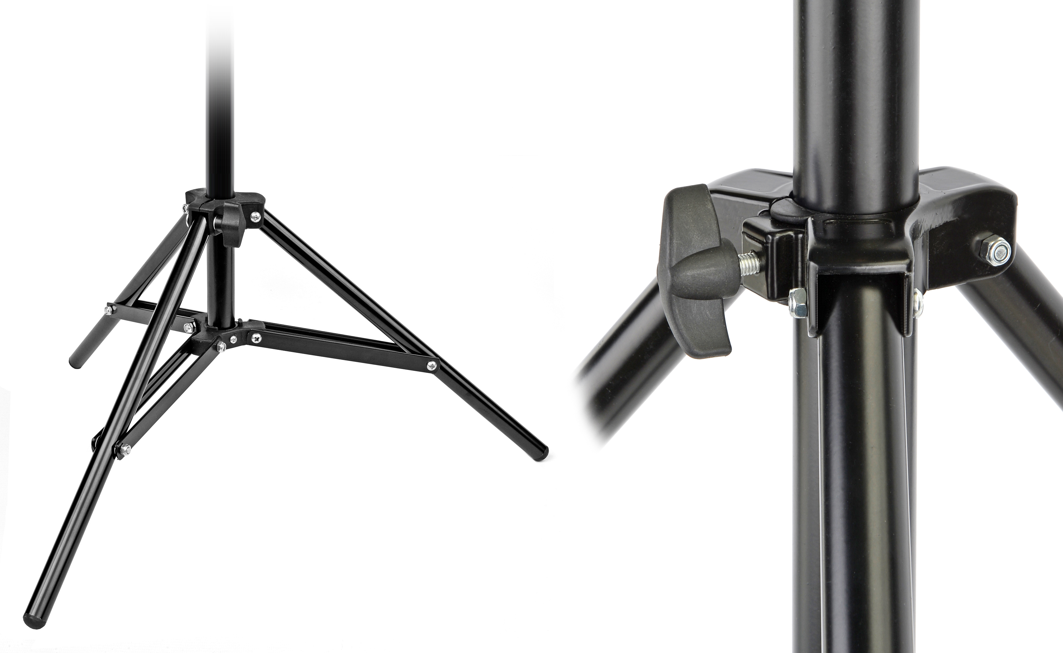 S robustným hliníkovým stojanom sa ľahko manipuluje a dá sa kompaktne zložiť. Statív má systém vzduchového odpruženia, ktorý absorbuje prípadné otrasy pri spúšťaní. Vďaka nastaveniu uhla možno rameno výložníka v okamihu nastaviť do požadovanej výšky a uhla . Na závitovú prípojku možno pripojiť nielen blesky fotoštúdia, denné svetlá alebo panelové LED svetlá, ale aj fotoaparáty.
