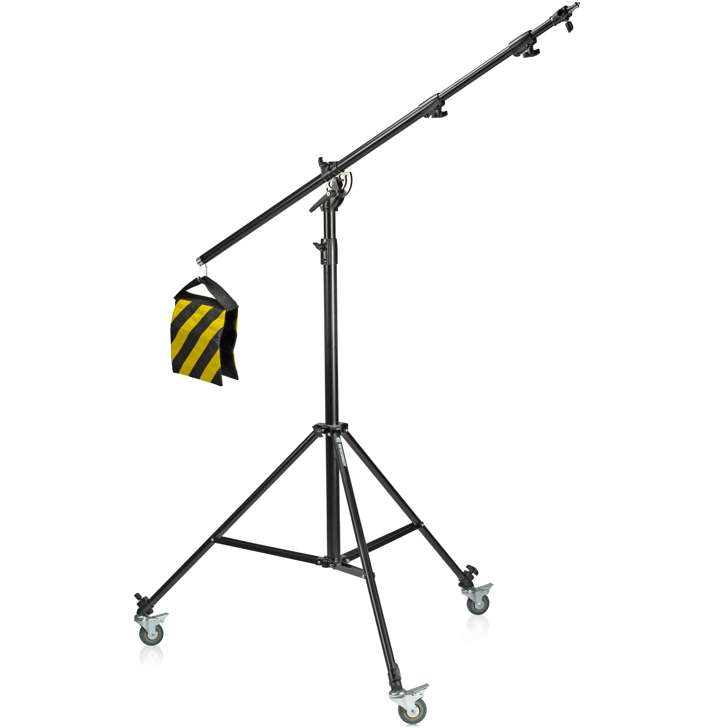 Praktický systém umožňuje veľmi ľahko premeniť hornú časť na statív s ramenom výložníka . Dodáva sa vrecko na piesok z Cordury , ktoré možno podľa potreby naplniť pieskom alebo iným materiálom a slúži ako protizávažie .