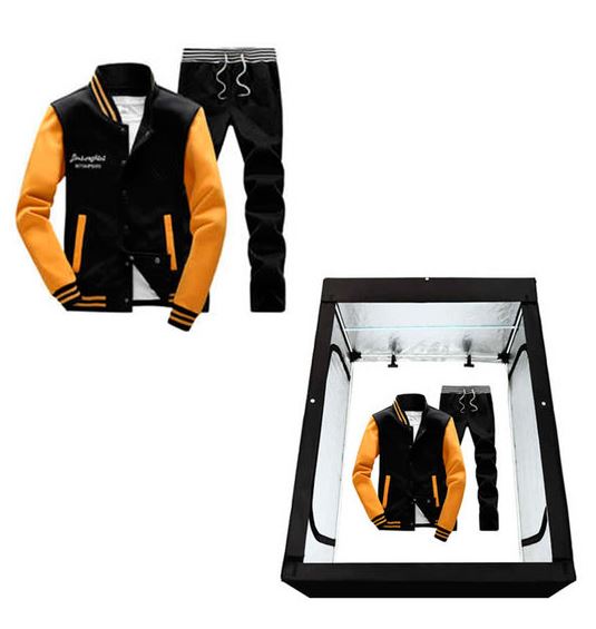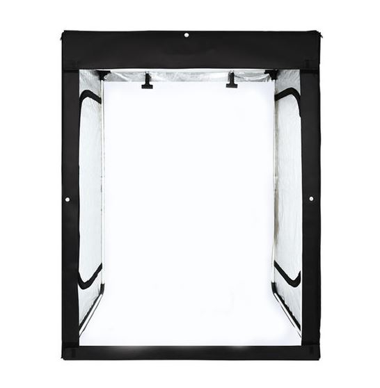 Veľké prenosné komplexné riešenie "všetko v jednom" v podobe svetelného boxu s tromi rôznymi pozadiami, svorkami na upevnenie a veľkým priestorom na veľké produkty, optimálne osvetlené 6 x 150-wattovými LED pásmi, ktoré možno pripevniť magneticky .