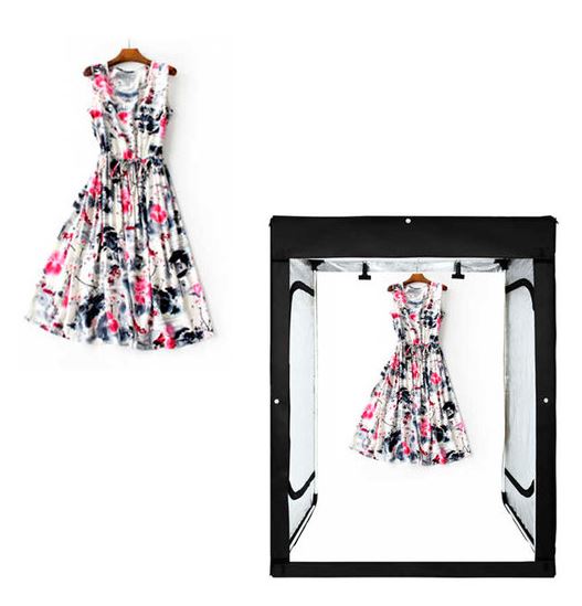 Priestorovo úsporné fotoštúdio BRESSER je pripravené na použitie bez ďalšieho vybavenia fotoštúdia.