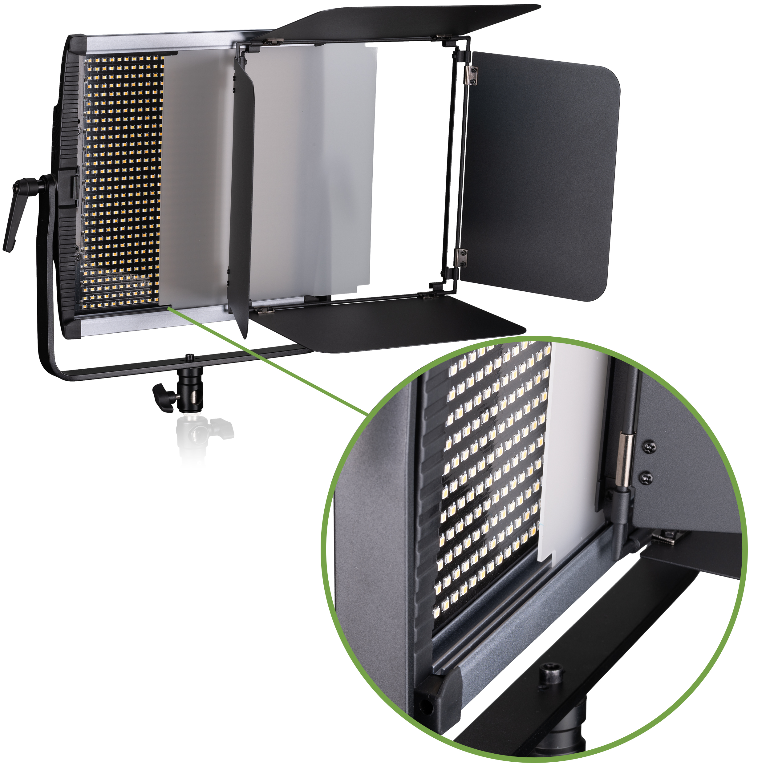 S teplotou farieb 3 200 až 5 600 K, ktorú možno ľahko prispôsobiť okolitému svetlu, nenecháva v oblasti fotografie a videa nič na náhodu. Rovnomerné svetlo možno ľahko zaostriť pomocou svetelných klapiek.