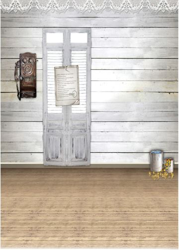 - Motív: Biela drevená stena + dvere