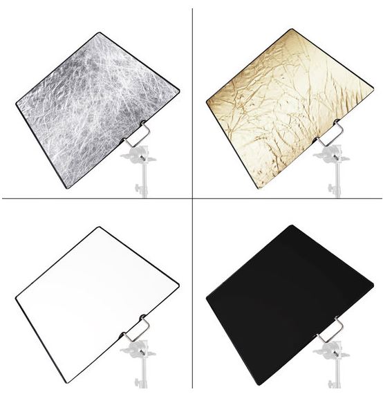 Vďaka dodávaným krytom na rám možno Flag Panel použiť ako difúzor aj ako reflektor v štyroch farbách: zlatej, striebornej, bielej a čiernej .