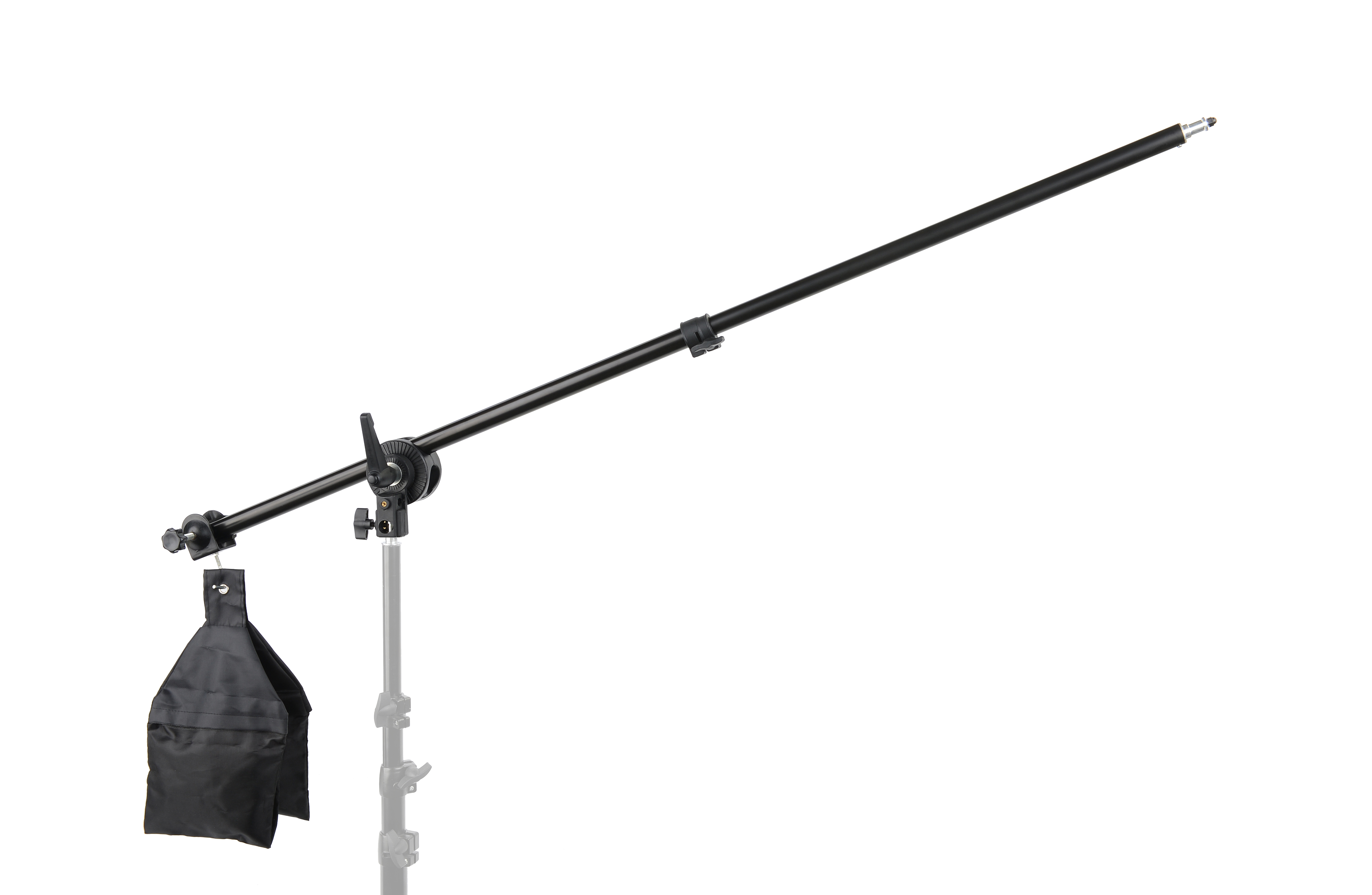 Pomocou tohto predlžovacieho ramena môžete tiež umiestniť príslušenstvo nad fotografované objekty. Uhol ramena sa dá individuálne nastaviť. Rameno má maximálnu dĺžku 140 cm. Pomocou dodanej rúrkovej svorky a vrecúška s pieskom môžete ľahko vytvoriť protiváhu , vďaka čomu je rameno vhodné aj pre ťažké príslušenstvo . K univerzálnemu adaptéru s vývodom v hornej časti ramena môžete pripojiť rôzne príslušenstvo.