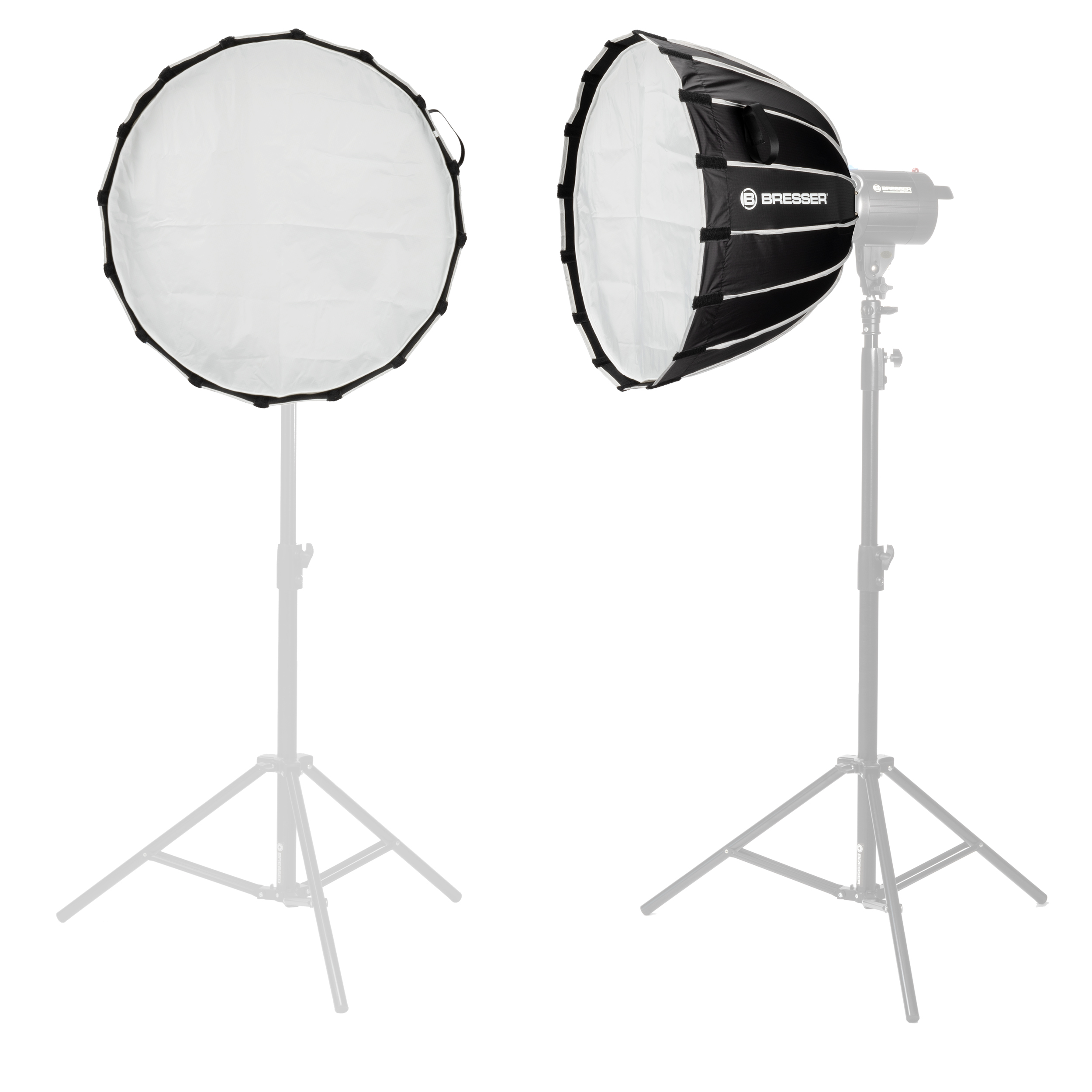 Softbox je nevyhnutnou súčasťou vybavenia profesionálneho fotoštúdia, ale jeho nastavenie je často zdĺhavé a časovo náročné. Funkcia Super Quick parabolického softboxu BRESSER zjednodušuje manipuláciu a zároveň z neho robí ideálneho spoločníka na mieste. Softbox s priemerom 60 cm a hĺbkou 42 cm, vybavený držiakom Bowens, možno pripojiť k rôznym štúdiovým svetlám a štúdiovým bleskom .