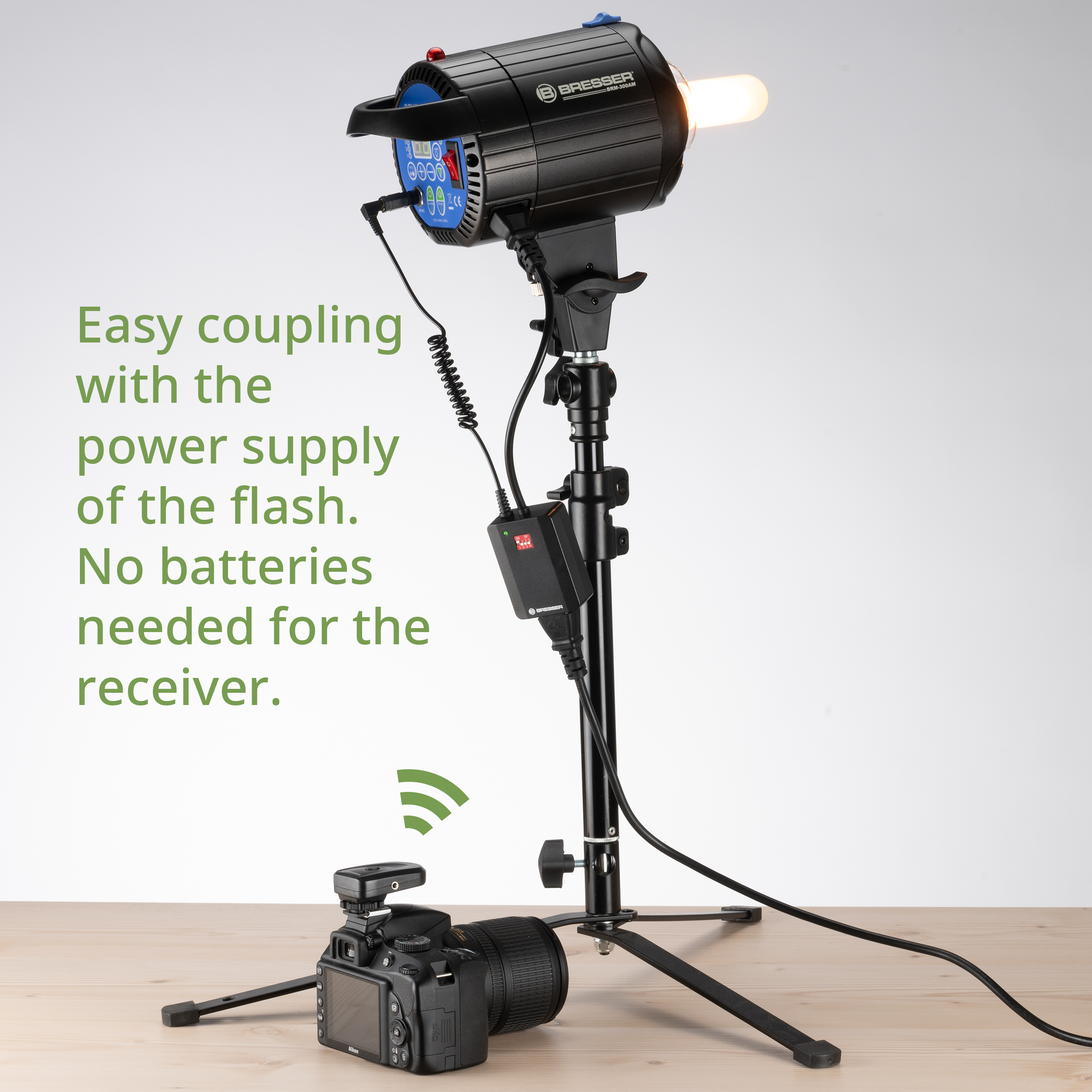 Novo vyvinutá rádiová spúšť BRESSER T-16 v praktickej súprave umožňuje spúšťanie bleskov vo fotoštúdiu na 16 kanáloch bez rušivých synchronizačných káblov. S vysielačom pripojeným k horúcej pätici fotoaparátu a prijímačom napájaným cez sieťový kábel blesku sa blesk ovláda po spustení fotoaparátu.