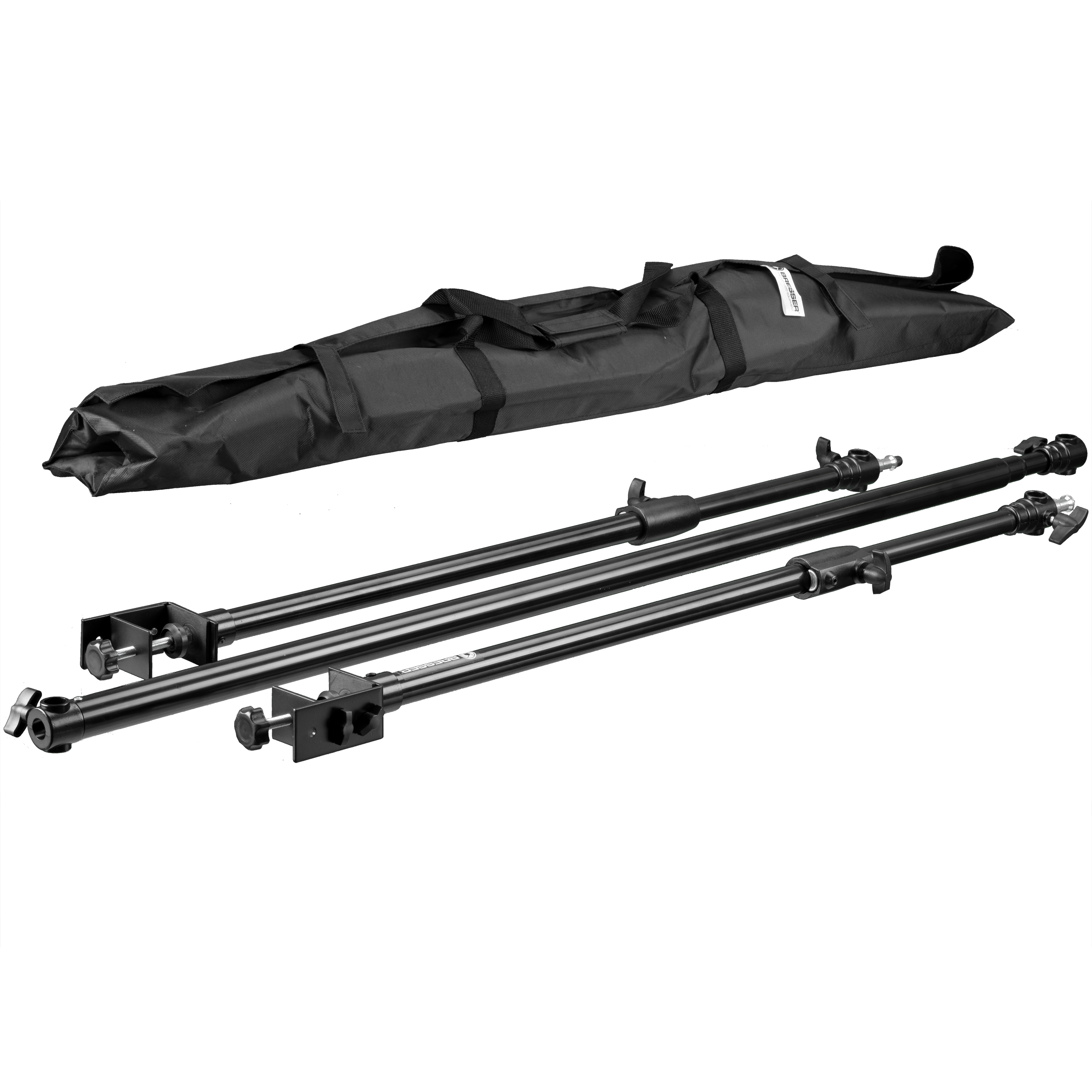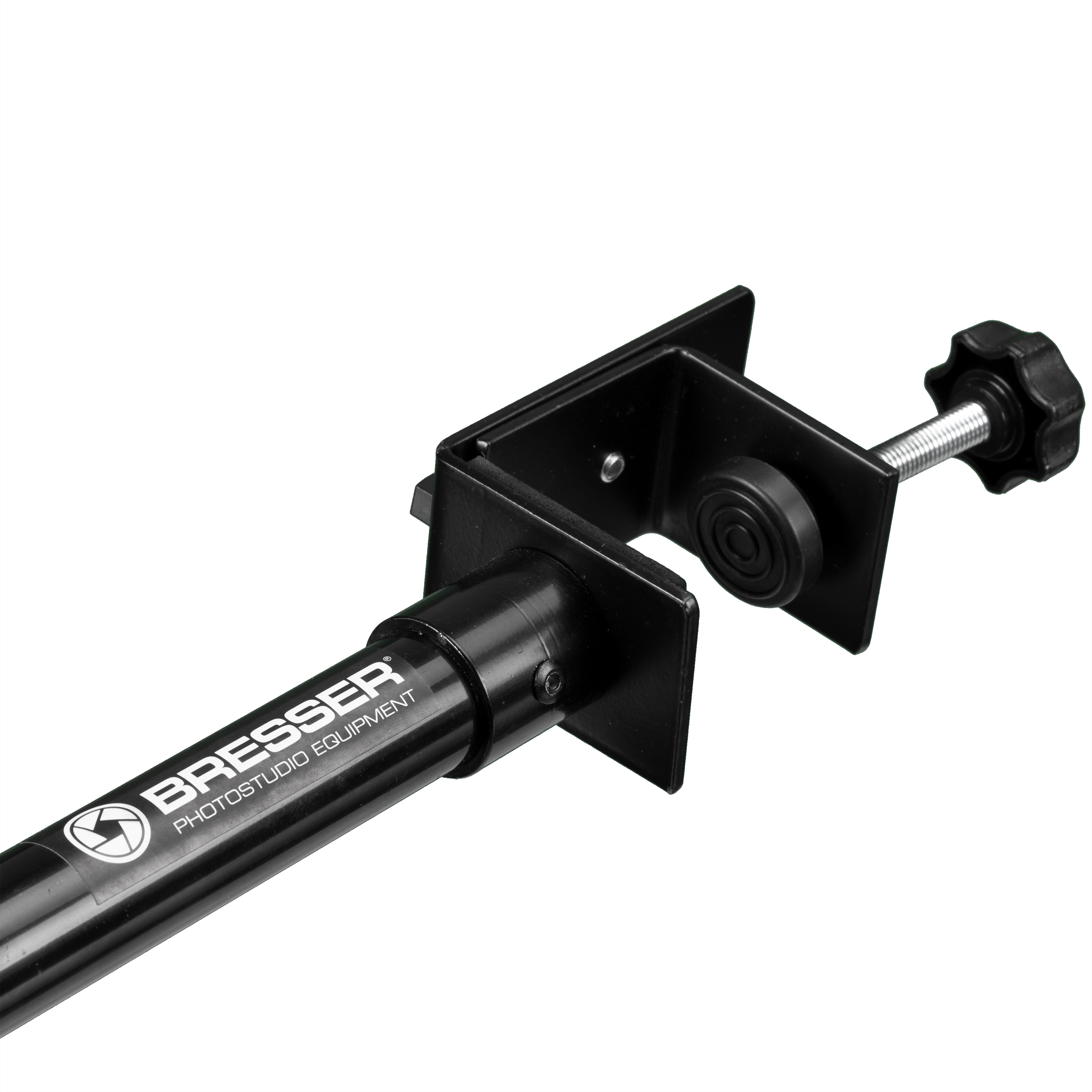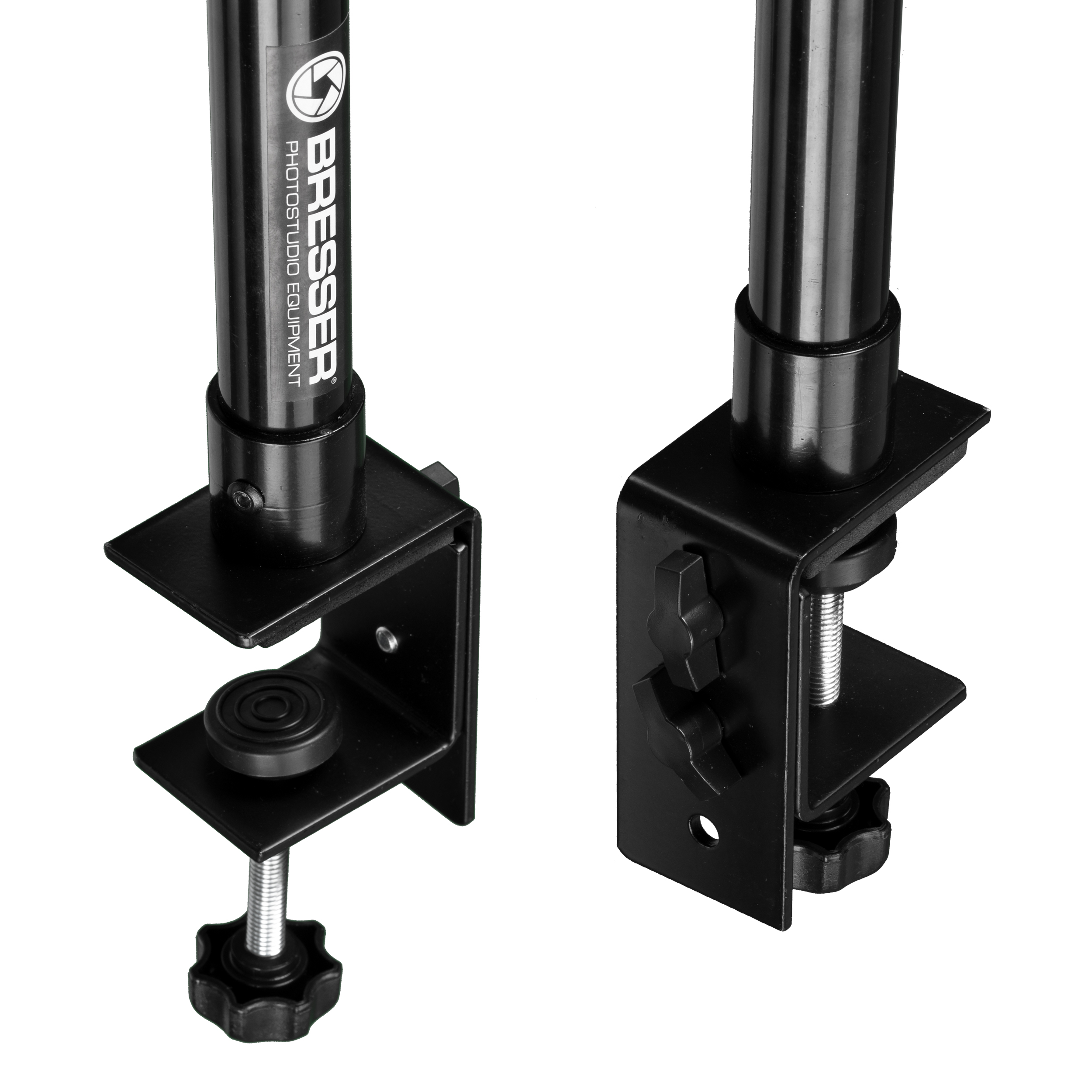 K pevnému systému možno rýchlo pripevniť papierové role pozadia, malé vinylové role, látkové pozadia alebo pozadia s fotografickými motívmi. Teleskopická priečka sa prispôsobí akémukoľvek pozadiu so šírkou minimálne 120 až 300 cm. Bočné stojany sa rýchlo pripevnia k stolu pomocou robustných stolových svoriek s otvorom do 65 mm a ich výšku možno variabilne nastaviť od 60 do 100 cm.