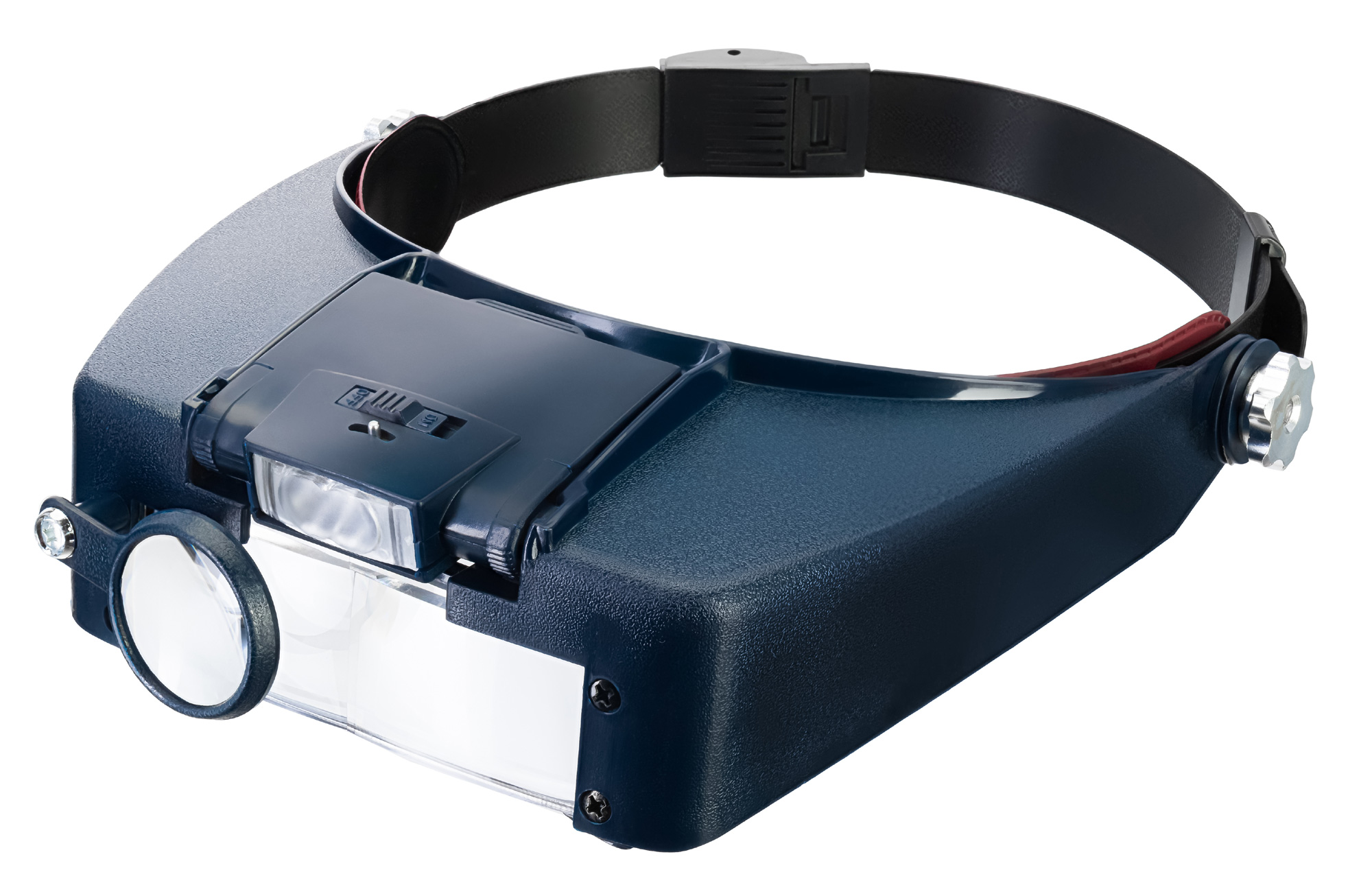 Lupa sa upevňuje na hlavu pomocou dížkovo nastaviteľnej čelenky. Na fungovanie osvetlenia sú potrebné batérie.