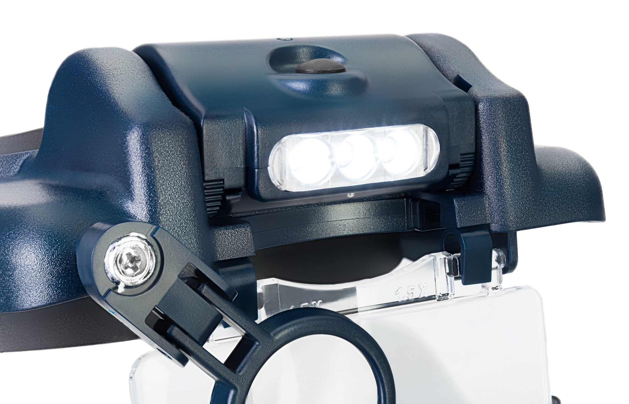 Lupa sa fixuje na hlave pomocou nastaviteľnej čelenky. K dispozícii je aj LED osvetlenie napájané nabíjateľnou batériou, ktorá sa dobíja cez microUSB – USB kábel. Jas osvetlenia je nastaviteľný.