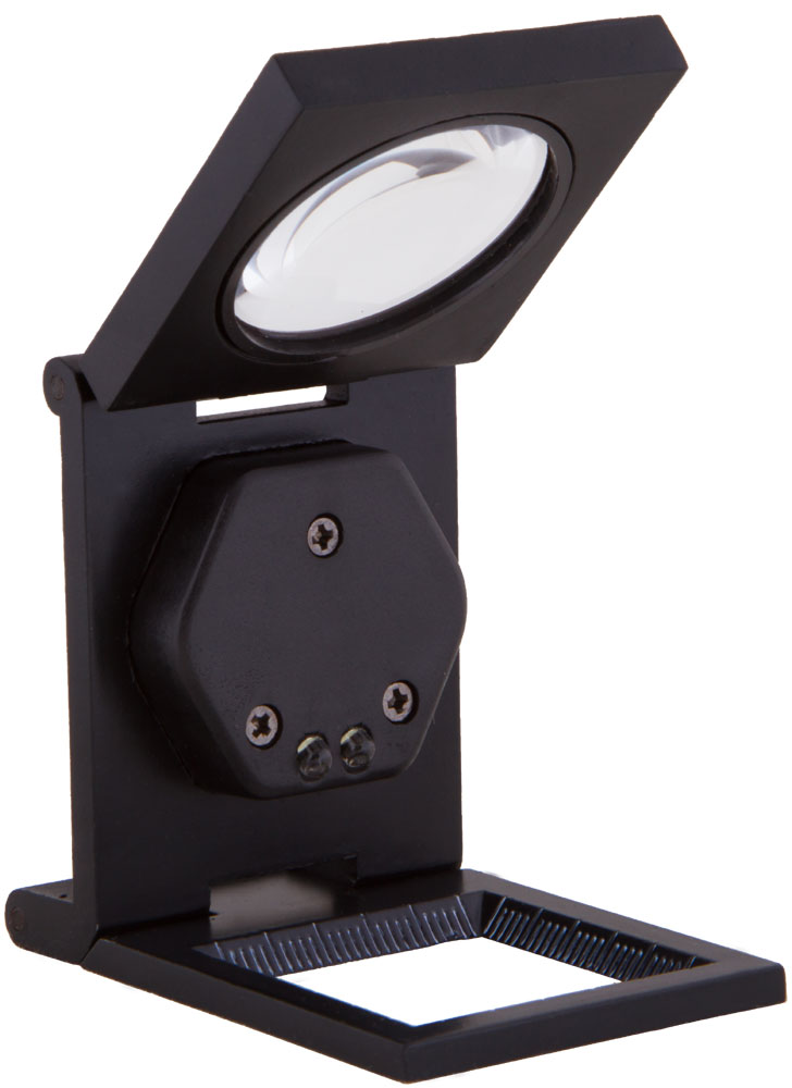 Lupa sa skladá z kovového statívu a k nemu pripevnenej sklenenej šošovky. Uhol sklonu šošovky je nastaviteľný. Jej zväčšenie je 6x. Priestor pod šošovkou je možné osvetliť vstavanými LED diódami. Sú napájané batériami. Jas osvetlenia je možné nastaviť v širokom rozsahu. Základňa je vybavená meracími stupnicami v centimetroch a palcoch.
