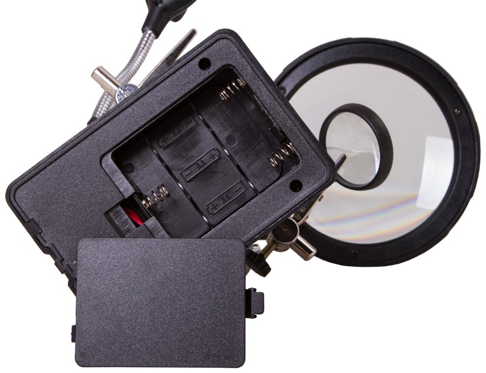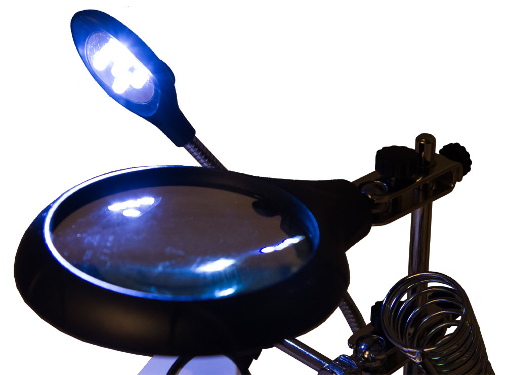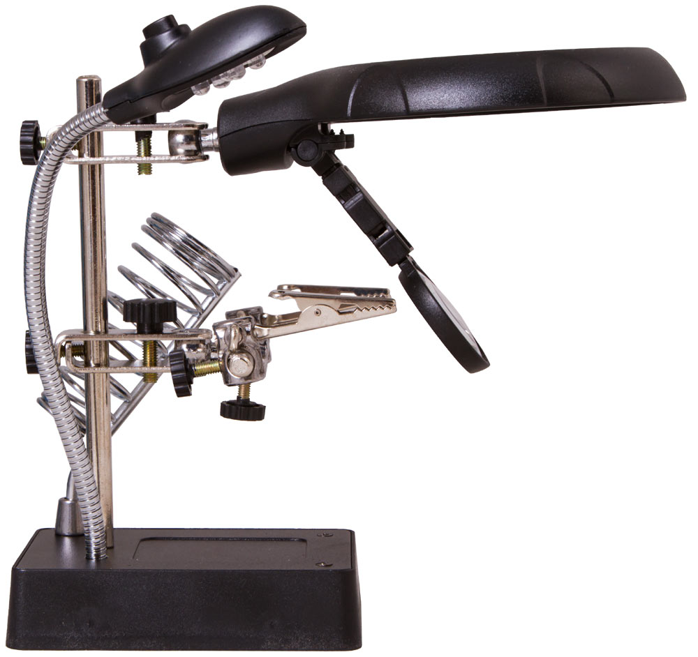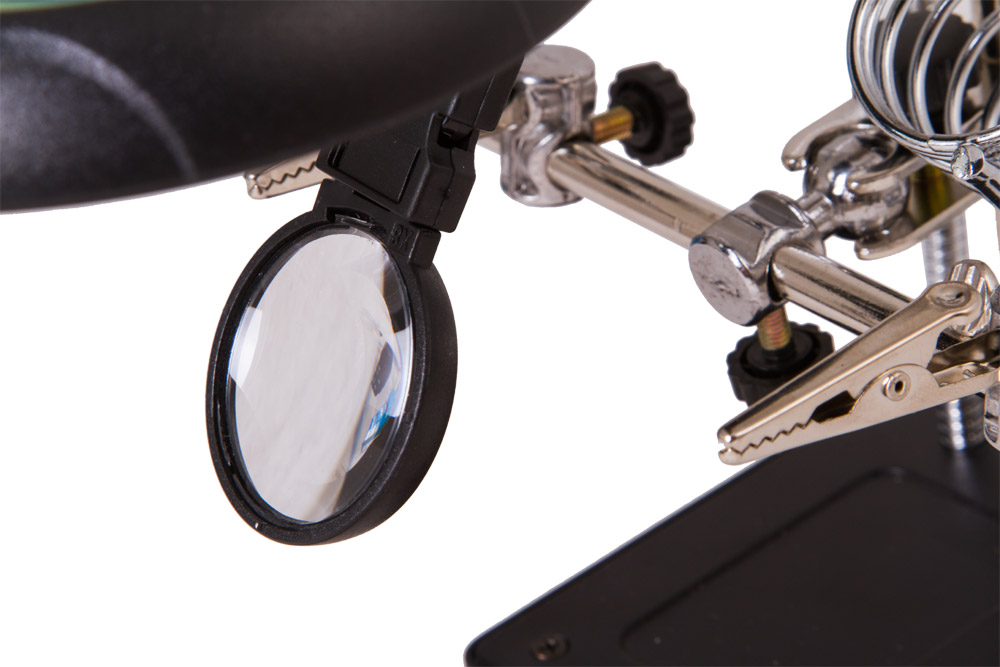 Pre väčšie pohodlie je stolná šošovka vybavená modulom “tretia ruka”. Odnímateľné držiaky predurčujú možnosť upevnenia skúmaného objektu v požadovanej rovine a uľahčujú tak dlhodobú prácu s ním.
