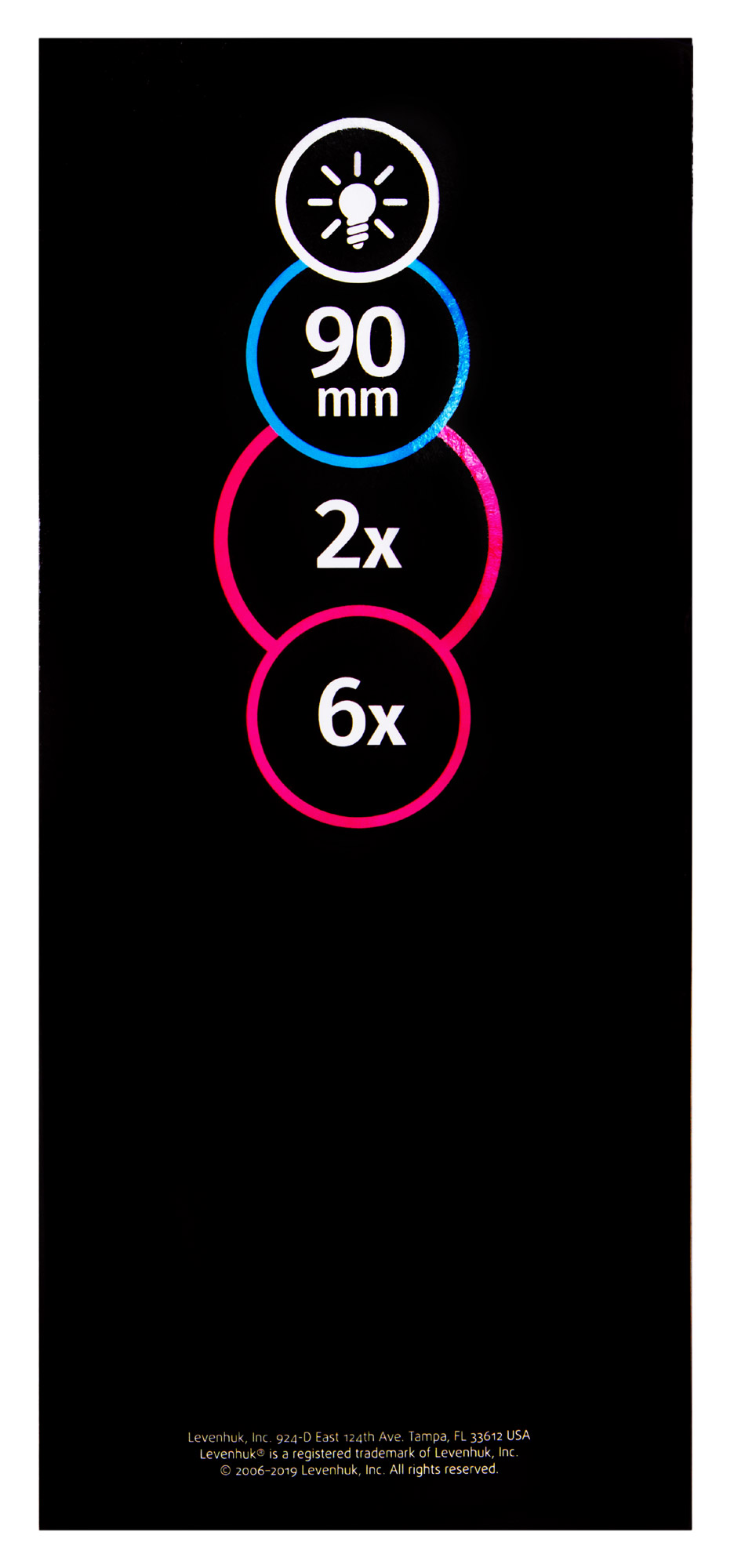 Levenhuk Zeno Handy ZH37 je prehliadacia lupa s osvetlením. S jej pomocou možno malé objekty prezerať v dvoch rôznych zväčšeniach – 2x alebo 6x. Priemer hlavnej šošovky je 90 mm, malý priemer (veľké zväčšenie) je 21 mm. Lupa je skvelá na čítanie malého textu, štúdium kresieb a fotografických detailov a prezeranie malých objektov.