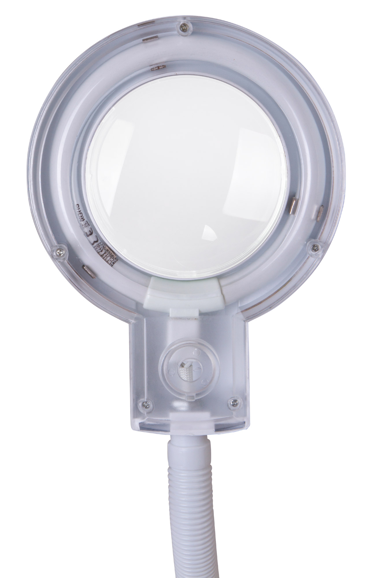 Široký rám okrem šošovky obsahuje funkčný modul fluorescenčného osvetlenia, napájaný striedavým prúdom. Ryhované ohybné rameno je možné otočiť do ľubovoľného uhla a výškovo nastaviť požadovanú polohu. Široká základňa zaručuje stabilitu zariadenia na akomkoľvek horizontálnom povrchu.