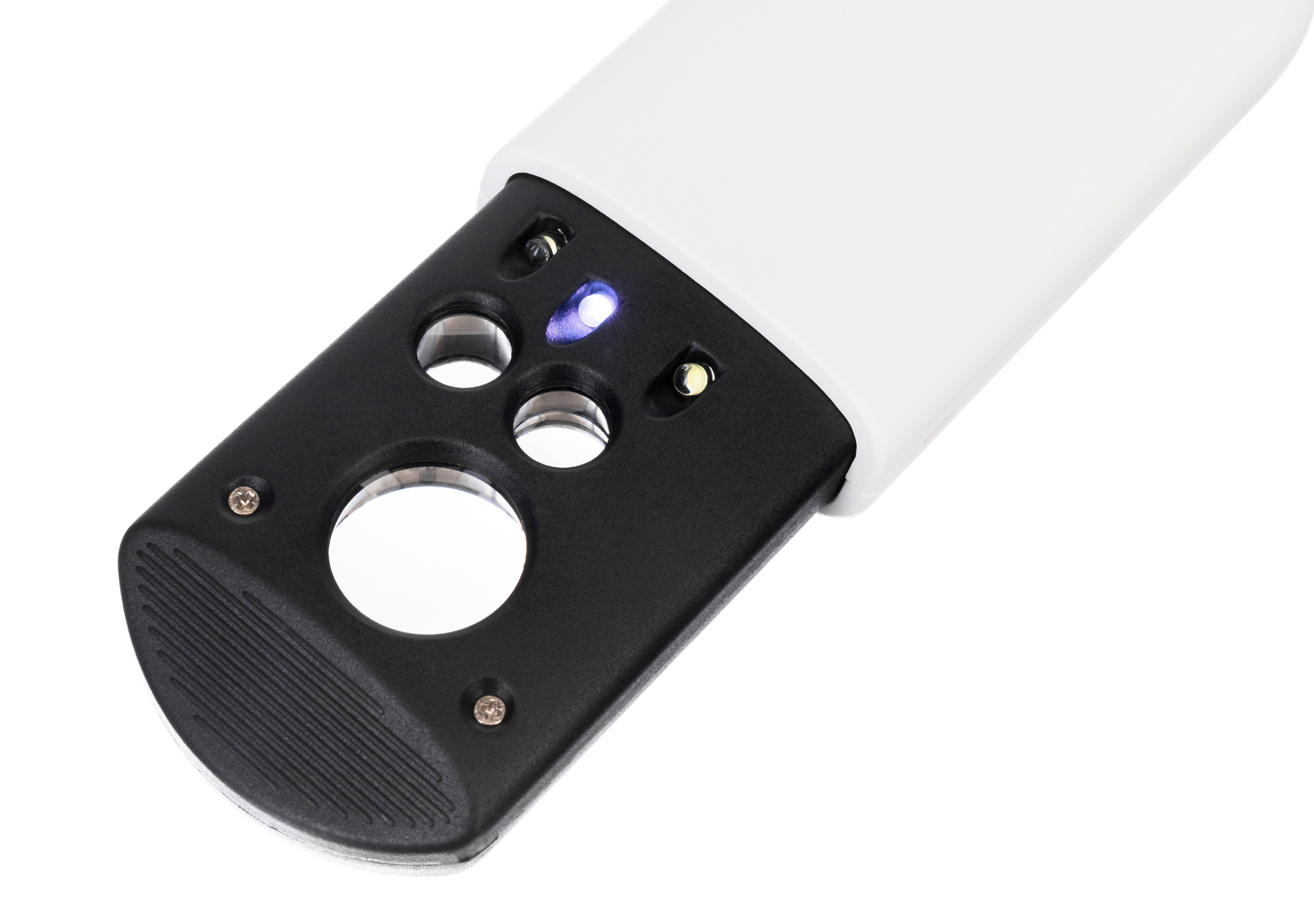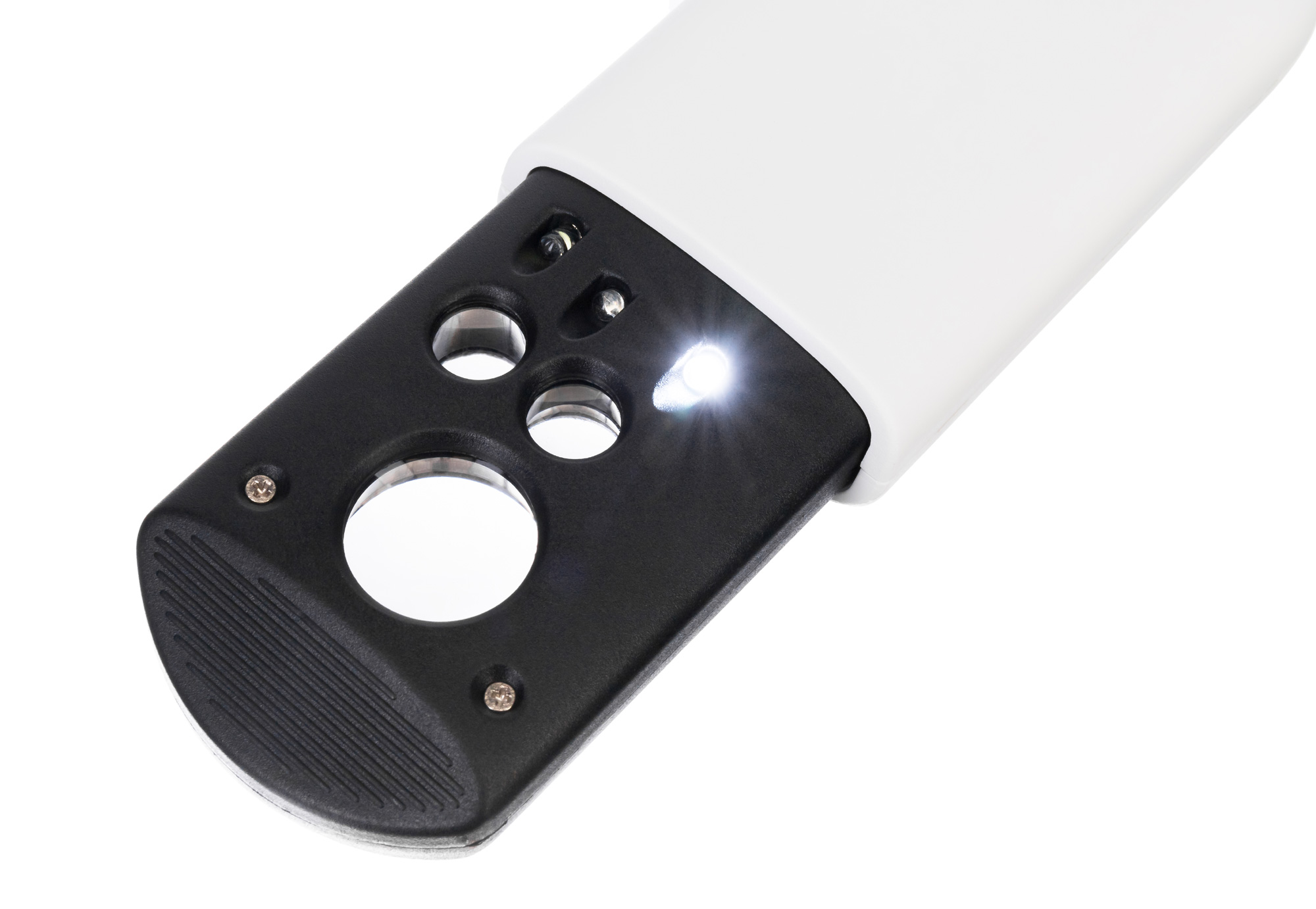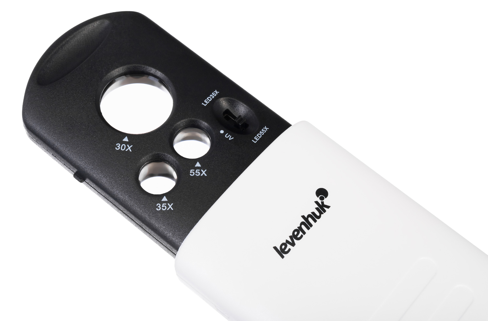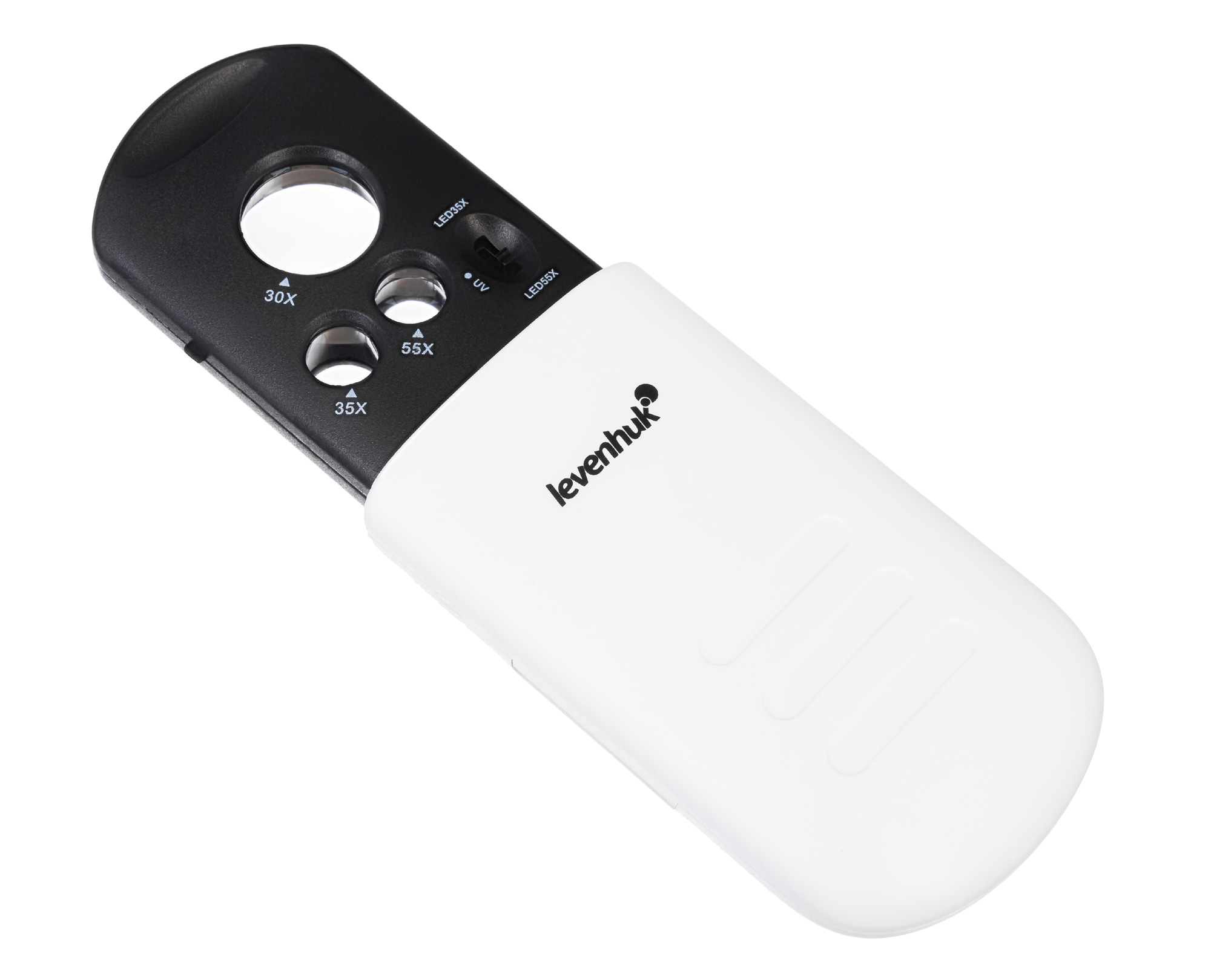 Napriek miniatúrnym rozmerom prístroja obsahuje naraz tri šošovky z optického plastu, ktoré poskytujú nezávislé pevné zväčšenia 30x, 35x a 55x. Sú umiestnené vo výsuvnej jednotke, ktorá sa zase ľahko skrýva v základnom tele jedným pohybom prsta. Sú tu dva druhy osvetlenia naraz. Klasická LED umožňuje prácu s lupou pri slabom okolitom svetle. UV žiarič zaručuje viditeľnosť vodoznakov na bankovkách, dôležitých dokumentoch a pod.