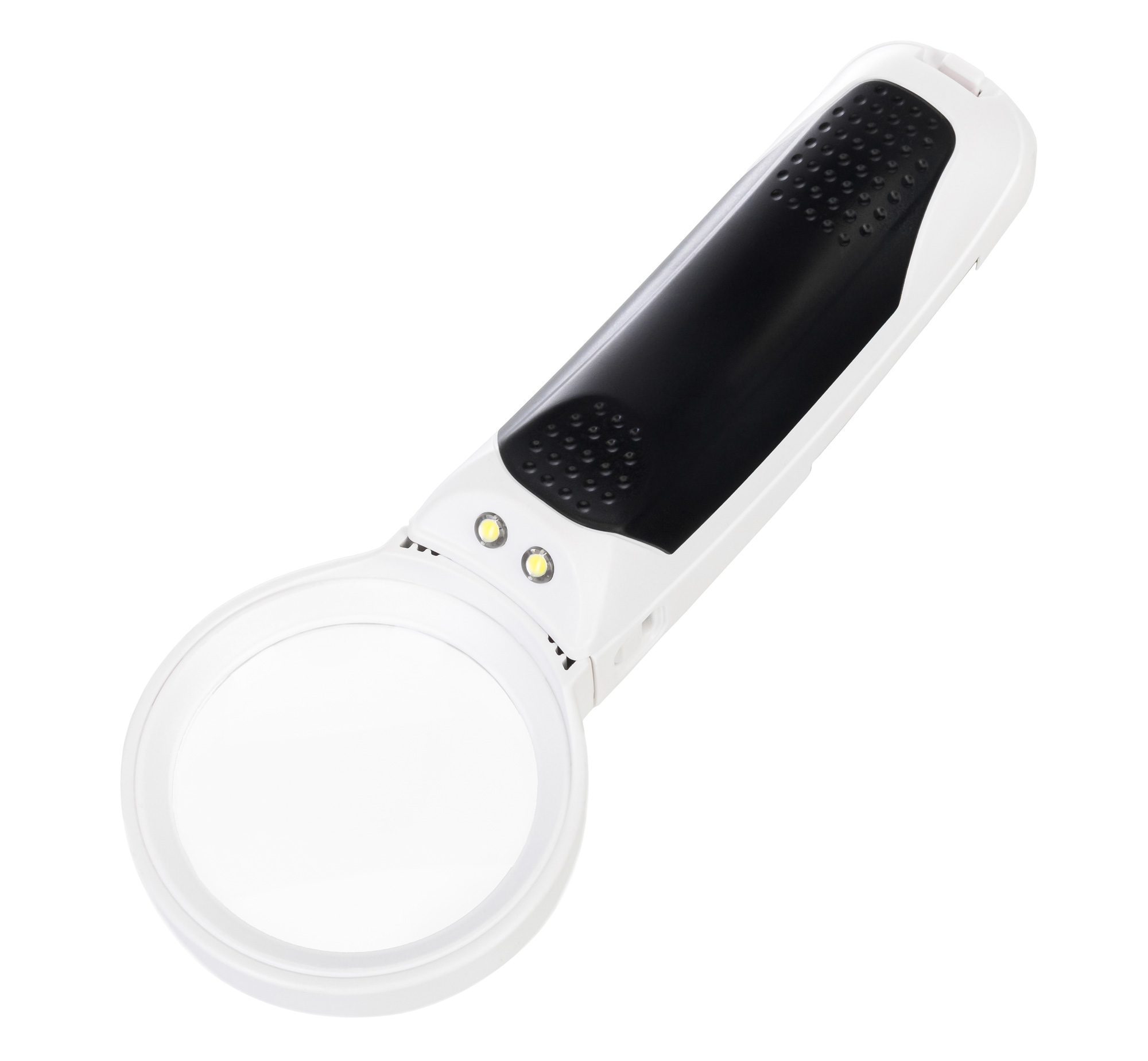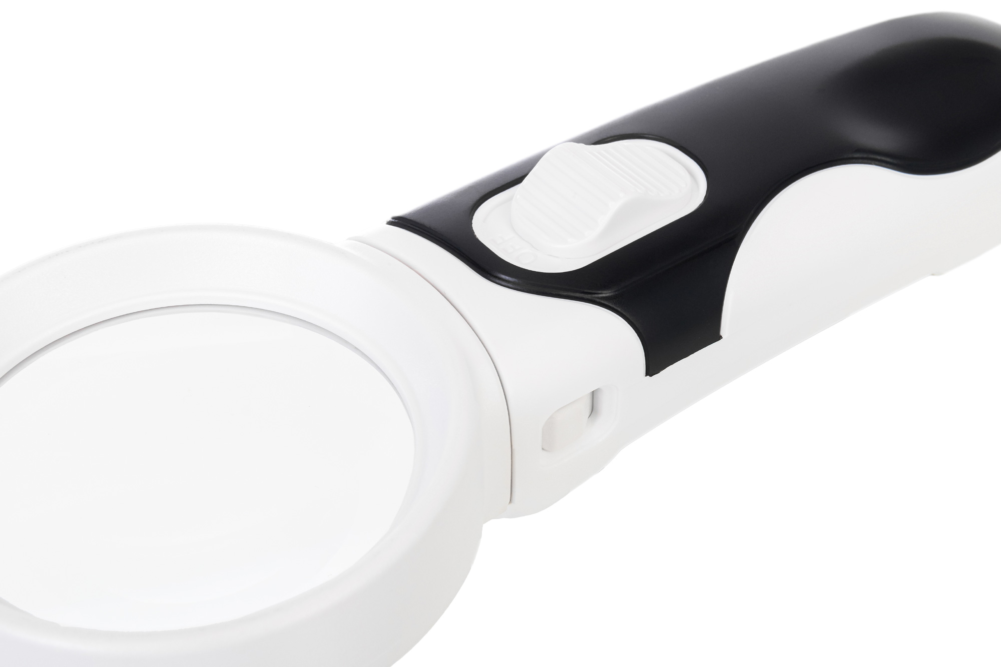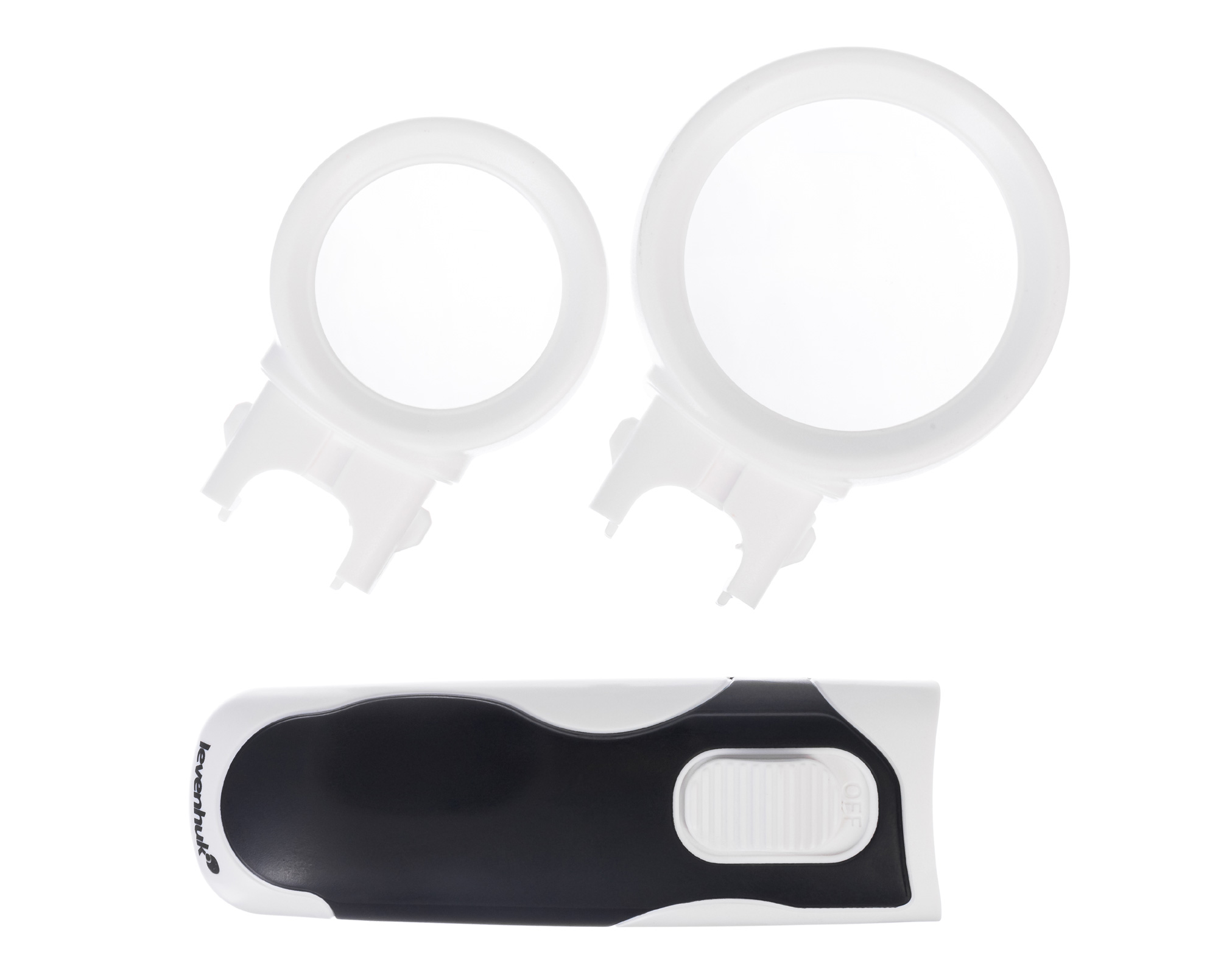 Upevňovacie rámy sa vkladajú do univerzálnej rukoväte lupy, ktorá je vybavená pohodlným uzamykacím mechanizmom vyberania šošoviek, ako aj vonkajším pogumovaním. Toto minimalizuje riziko vykĺznutia zariadenia z rúk pri jeho aktívnom používaní. Vstavané LED osvetlenie zaisťuje dobrú viditeľnosť pri slabom okolitom svetle a je napájané tromi AAA batériami vloženými do vnútorného priestoru rukoväte. Batérie sa zakupujú samostatne.