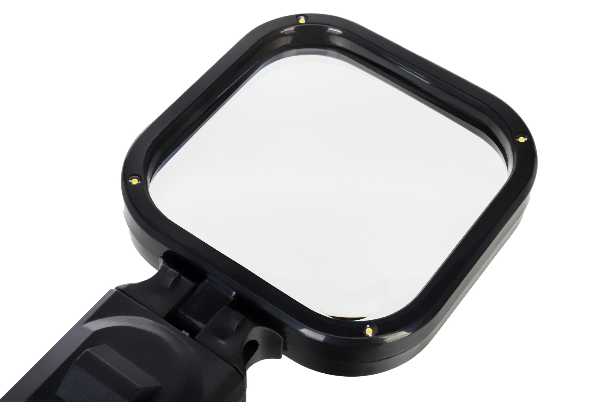 Všetky prvky lupy sú vyrobené z plastu, takže váži málo a v ruke ju takmer necítiť. Šošovka poskytuje čistý obraz, nemá zákal a skreslenia. Uhol jej sklonu je možné nastaviť. Vedľa šošovky je LED osvetlenie. Na jeho nastavenie sa používa prepínač na tele. Na napájanie osvetlenia sú potrebné batérie (nie sú súčasťou balenia).