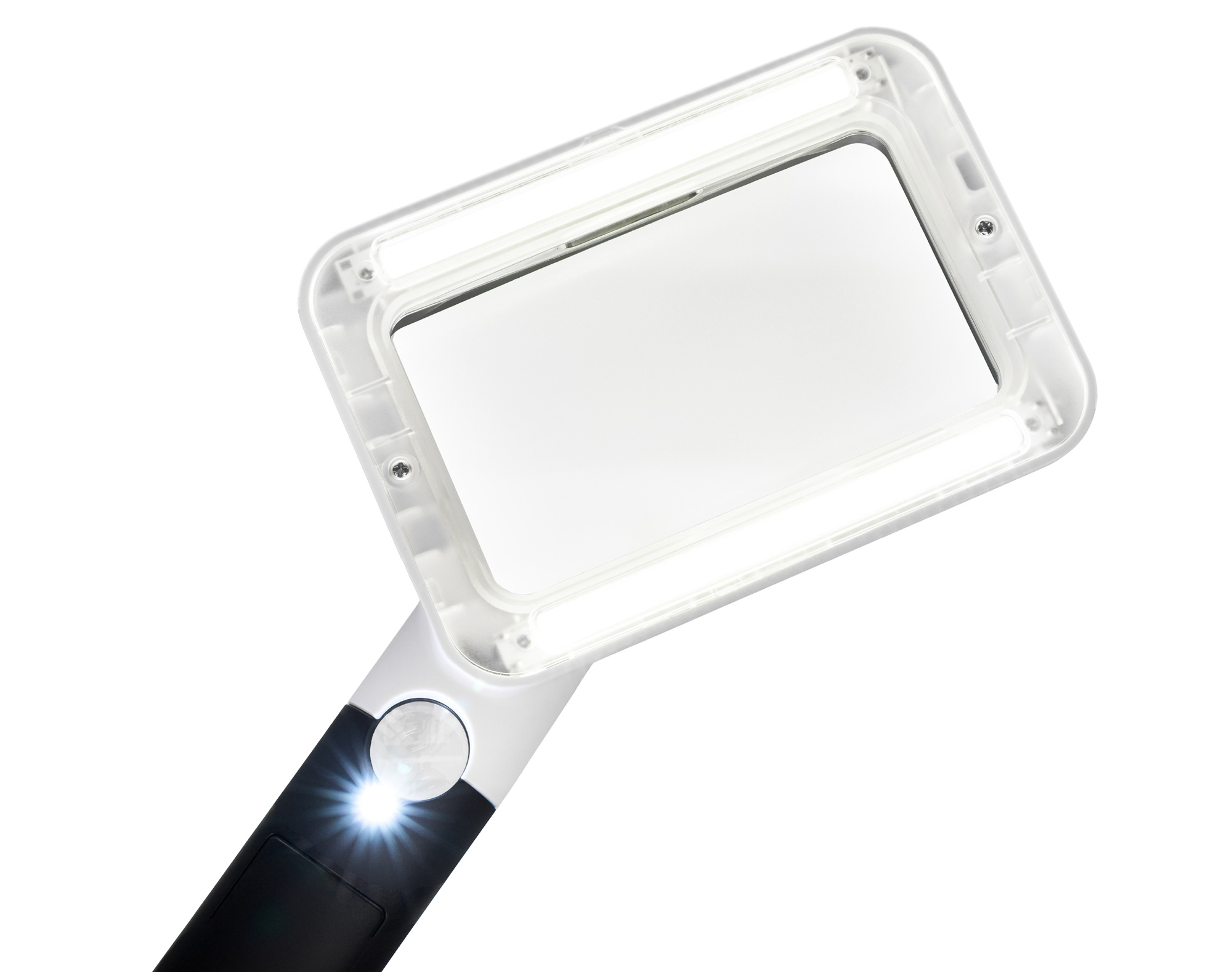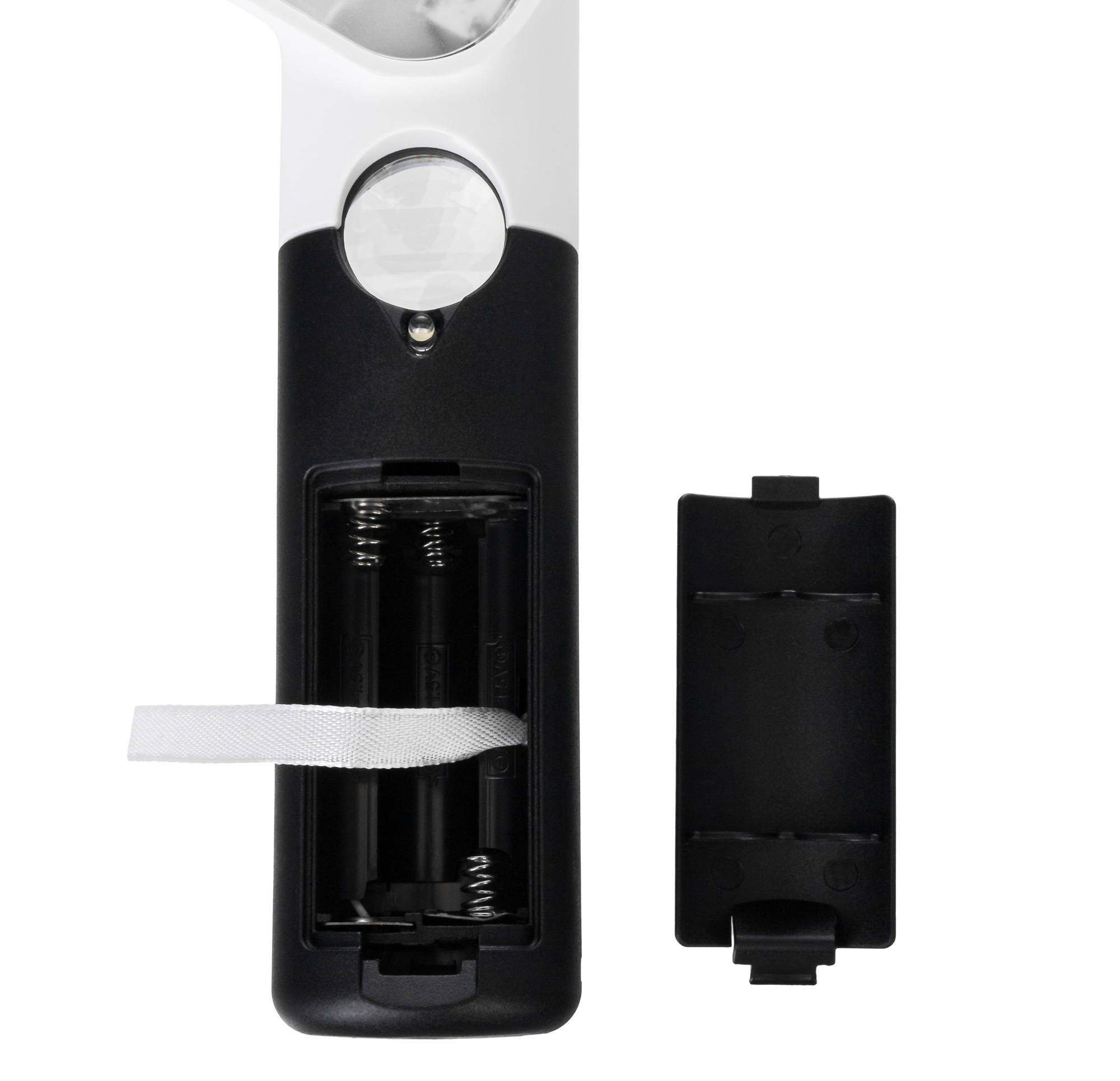 Lupa je vybavená osvetlením. Vedľa hlavnej šošovky sú dve COB LED, dodatočná šošovka má jednu klasickú LED. Osvetlenie je jasné a rovnomerné, jeho intenzitu je možné regulovať. Osvetlenie je napájané štandardnými batériami (nie sú súčasťou balenia).