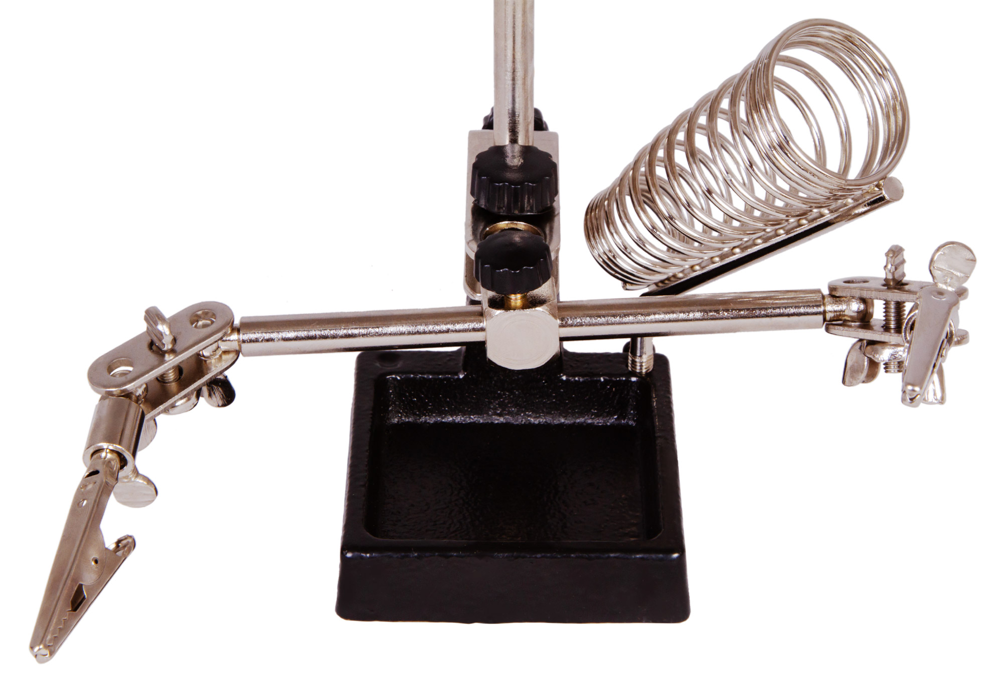 Na upevnenie objektov slúžia dva držiaky s klipsami, osobitný držiak je určený na umiestnenie spájkovačky. Priamo pod nimi sa nachádza priehradka na príslušenstvo.